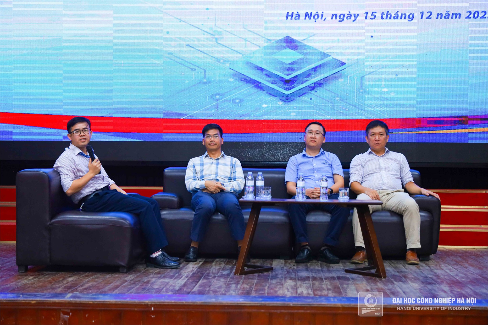 Các chuyên gia cũng đã dành thời gian chia sẻ và giải đáp cho sinh viên về cơ hội, thách thức cũng như những kiến thức cần có khi muốn theo học ngành vi mạch bán dẫn; đưa ra những phân tích và định hướng cho sinh viên về thị trường lao động ngành này trong tương lai.
