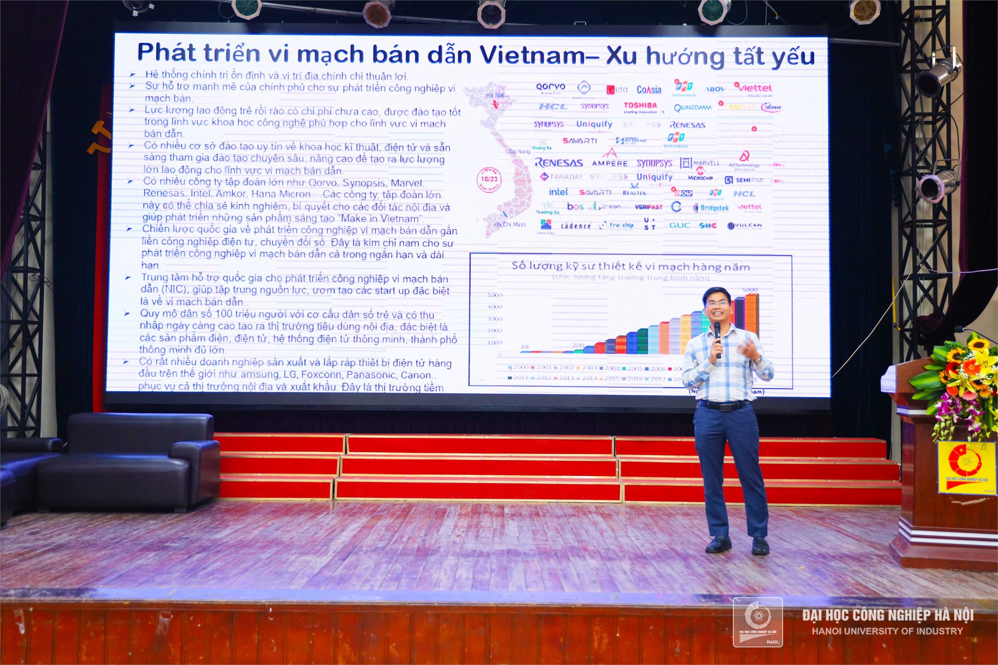 Truyền cảm hứng và động lực học tập cho sinh viên, ông Lê Thành Nam - Giám đốc công ty VIETA Solutions Việt Nam nhấn mạnh: Ngành vi mạch bán dẫn ở Việt Nam đang mở ra rất nhiều cơ hội với mức thu nhập cao, nhu cầu nguồn nhân lực cho ngành này ngày càng nhiều. Các bạn sinh viên cần nắm bắt cơ hội, thời cơ để đón đầu xu hướng, hãy dành thời gian để học tập, nghiên cứu, tham gia các câu lạc bộ sinh viên để trang bị những kiến thức cần thiết cho mình.