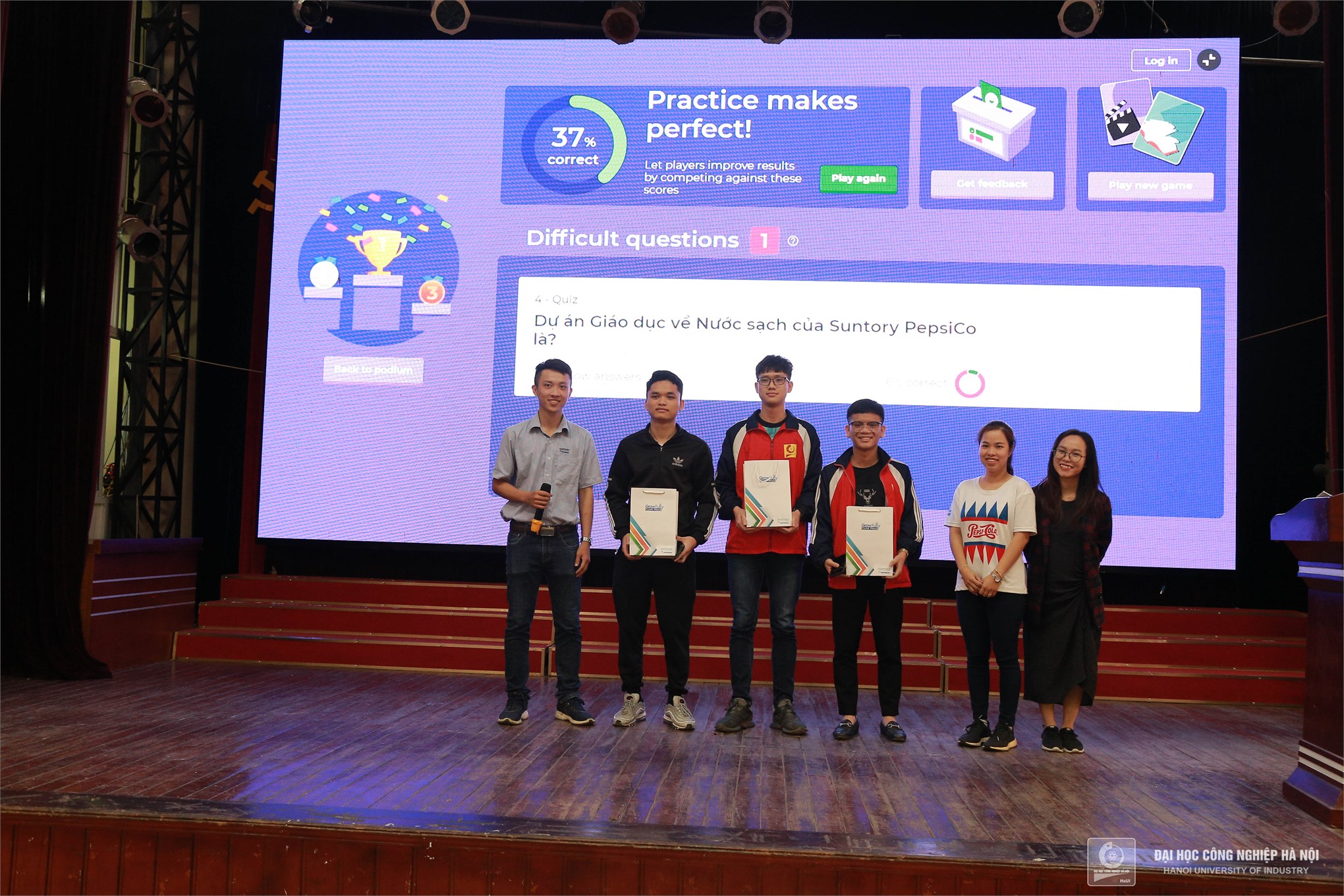 Hơn 100 sinh viên đến từ các khoa Cơ khí, Điện, Điện tử, Ngoại ngữ, Công nghệ ô tô đã có mặt tham dự và đặt rất nhiều câu hỏi cho nhà tuyển dụng đến từ Công ty Suntory Pepsico. Rất nhiều phần quà hấp dẫn của Công ty đã được trao cho các bạn sinh viên khi tham gia những game show ngay tại hội thảo tuyển dụng.