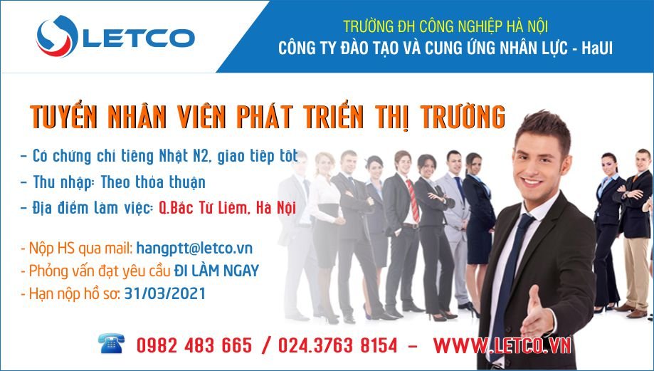 * Chi tiết xin liên hệ: Phòng Hành chính Nhân sự - Công ty Đào tạo và Cung ứng nhân lực - HaUI.