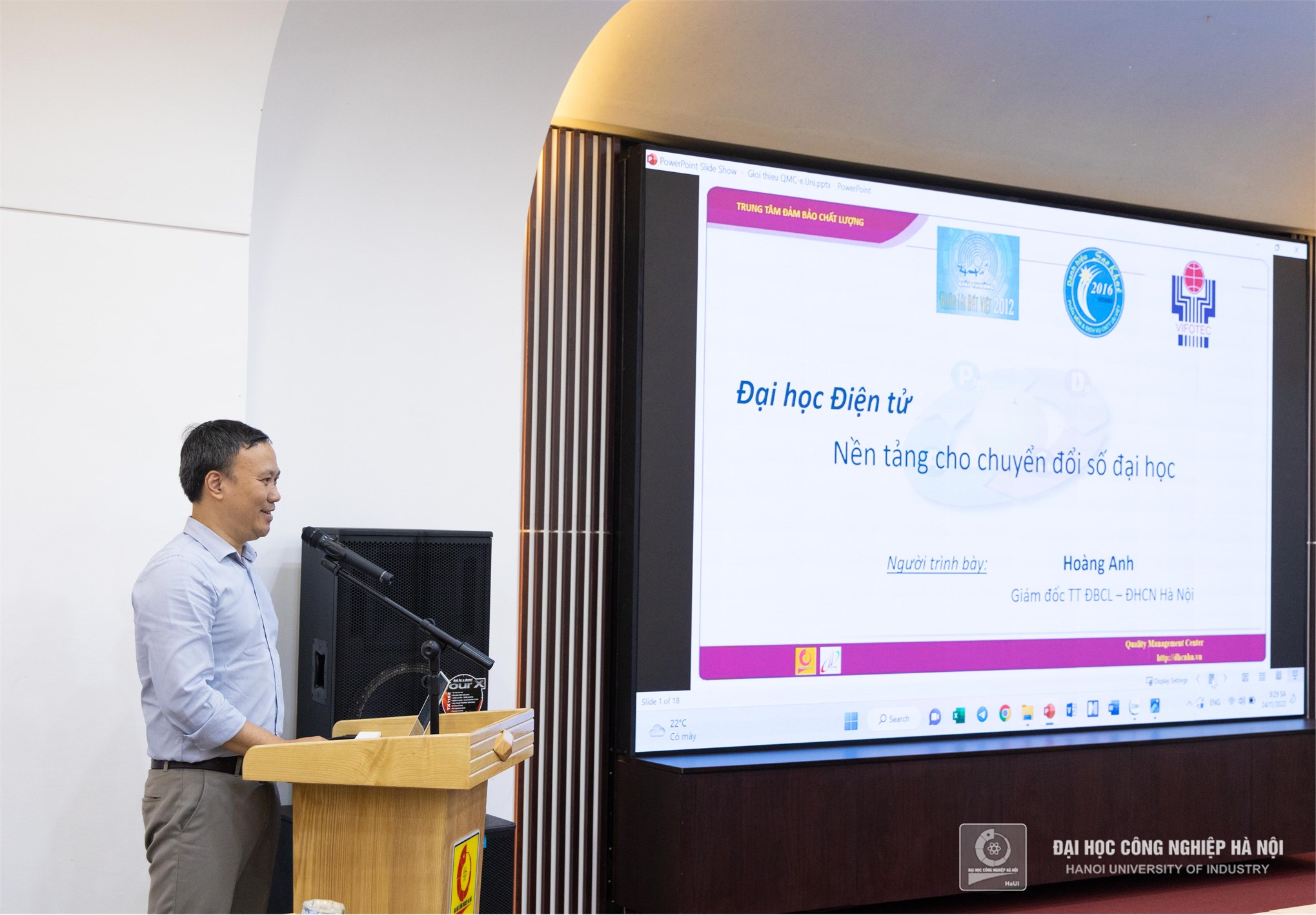 Ông Hoàng Anh - Giám đốc Trung tâm Đảm bảo chất lượng Đại học Công nghiệp Hà Nội giới thiệu về đại học điện tử - nền tảng cho chuyển đổi số đại học
