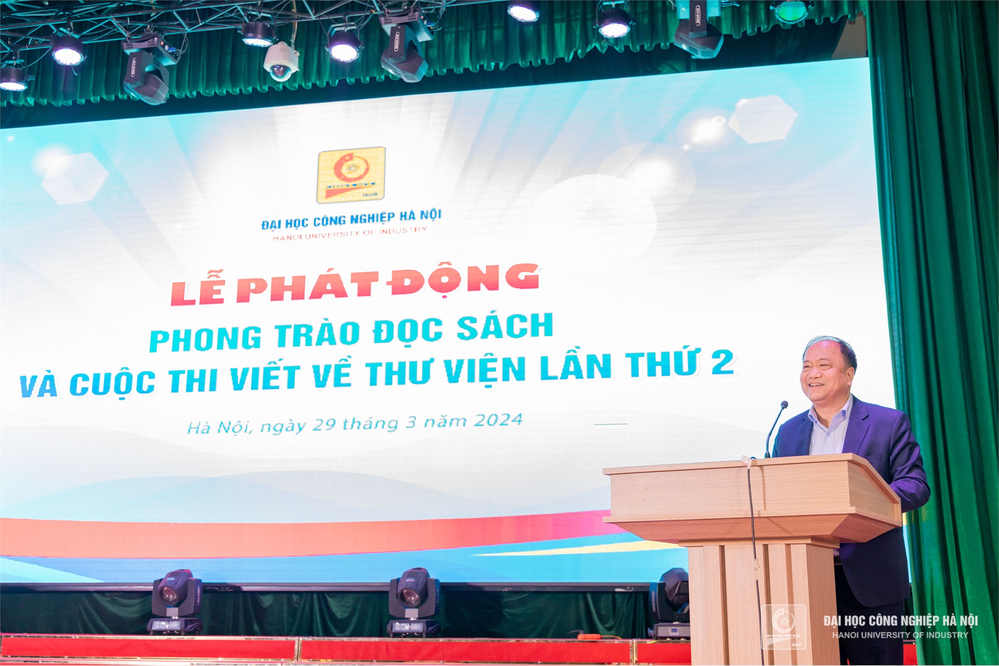 Tiếp nối thành công của cuộc thi viết về thư viện lần thứ nhất, sáng ngày 29/3, Đại học Công nghiệp Hà Nội tiếp tục tổ chức chương trình “Phát động phong trào đọc sách và cuộc thi viết về thư viện lần thứ 2”. Hơn 400 sinh viên hào hứng tham dự chương trình và có những trao đổi, chia sẻ thú vị với diễn giả.