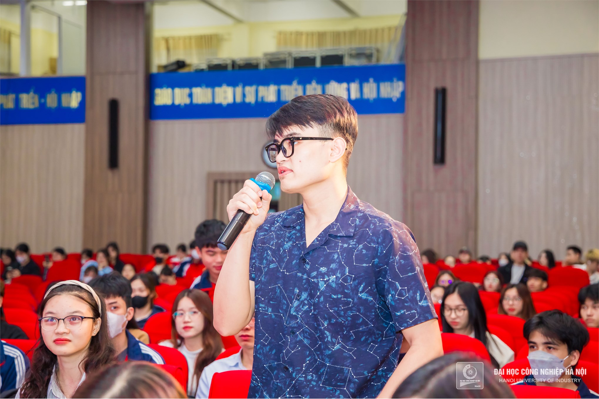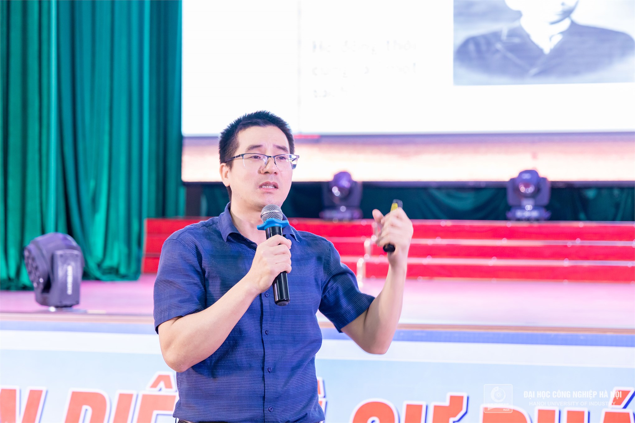 Diễn giả Nguyễn Quốc Vương chia sẻ, giao lưu với sinh viên Đại học Công nghiệp Hà Nội
