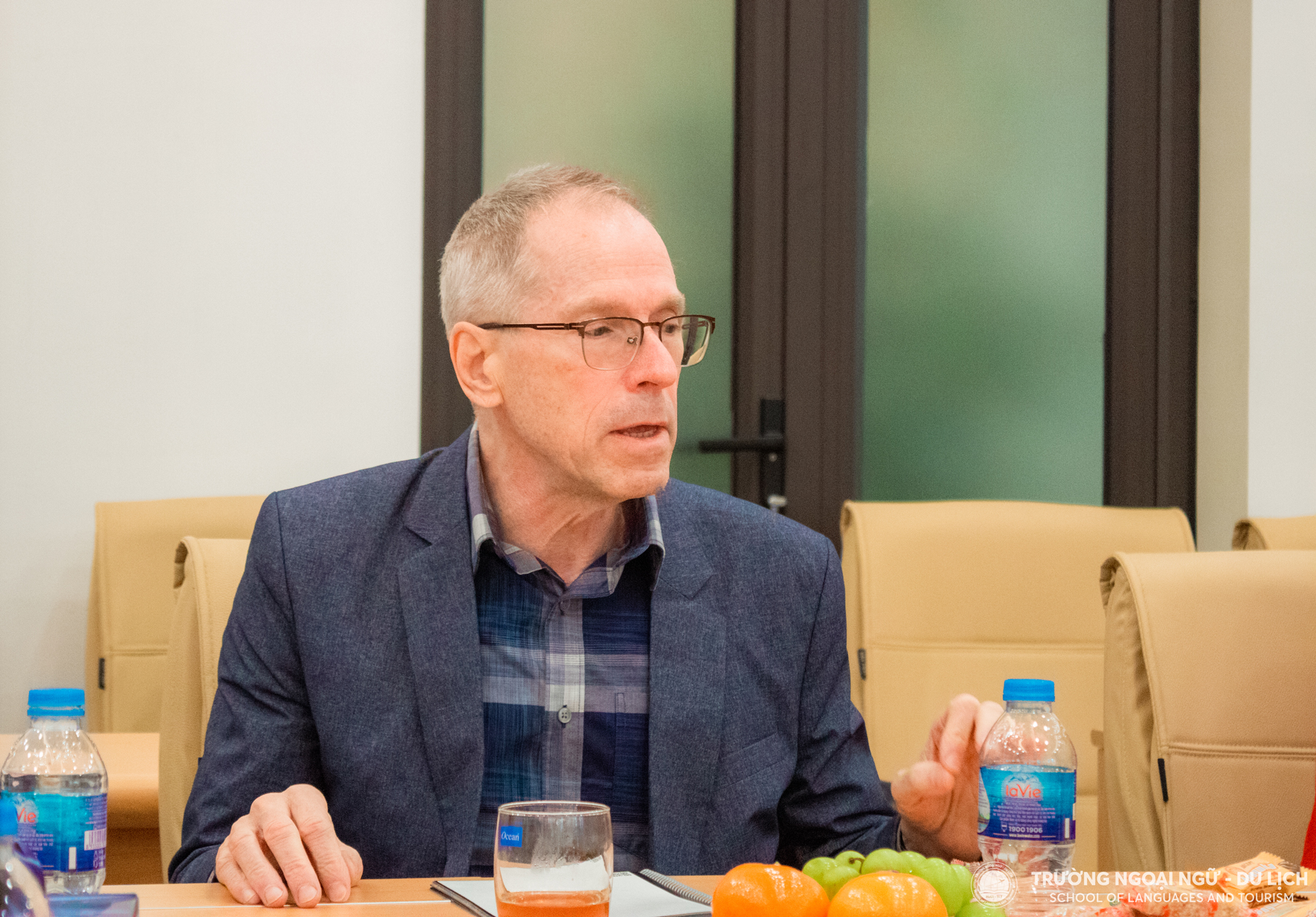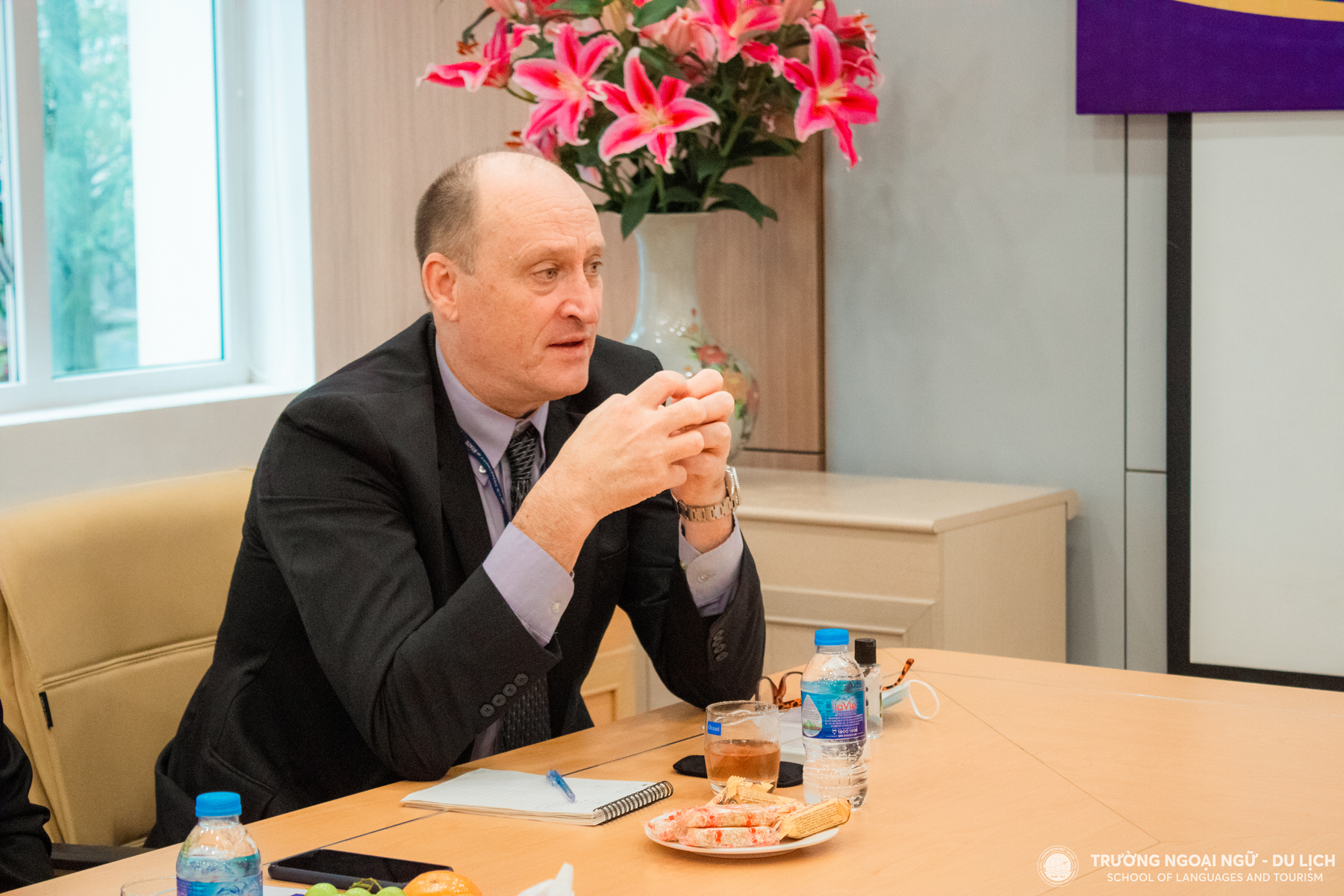 Tới làm việc tại Trường Ngoại ngữ - Du lịch, ông John Niblett bày tỏ sự cảm kích khi một lần nữa được công tác tại trường sau một khoảng thời gian dài làm việc trực tuyến. Ông đánh giá cao sự chuẩn bị của trường trong những lần về công tác tại cơ sở. Ông rất thích làm việc với các giáo viên và sinh viên tại trường. Với ông, đó là khoảng thời gian quý báu trong sự nghiệp phát triển giảng dạy ngôn ngữ tại Việt Nam.