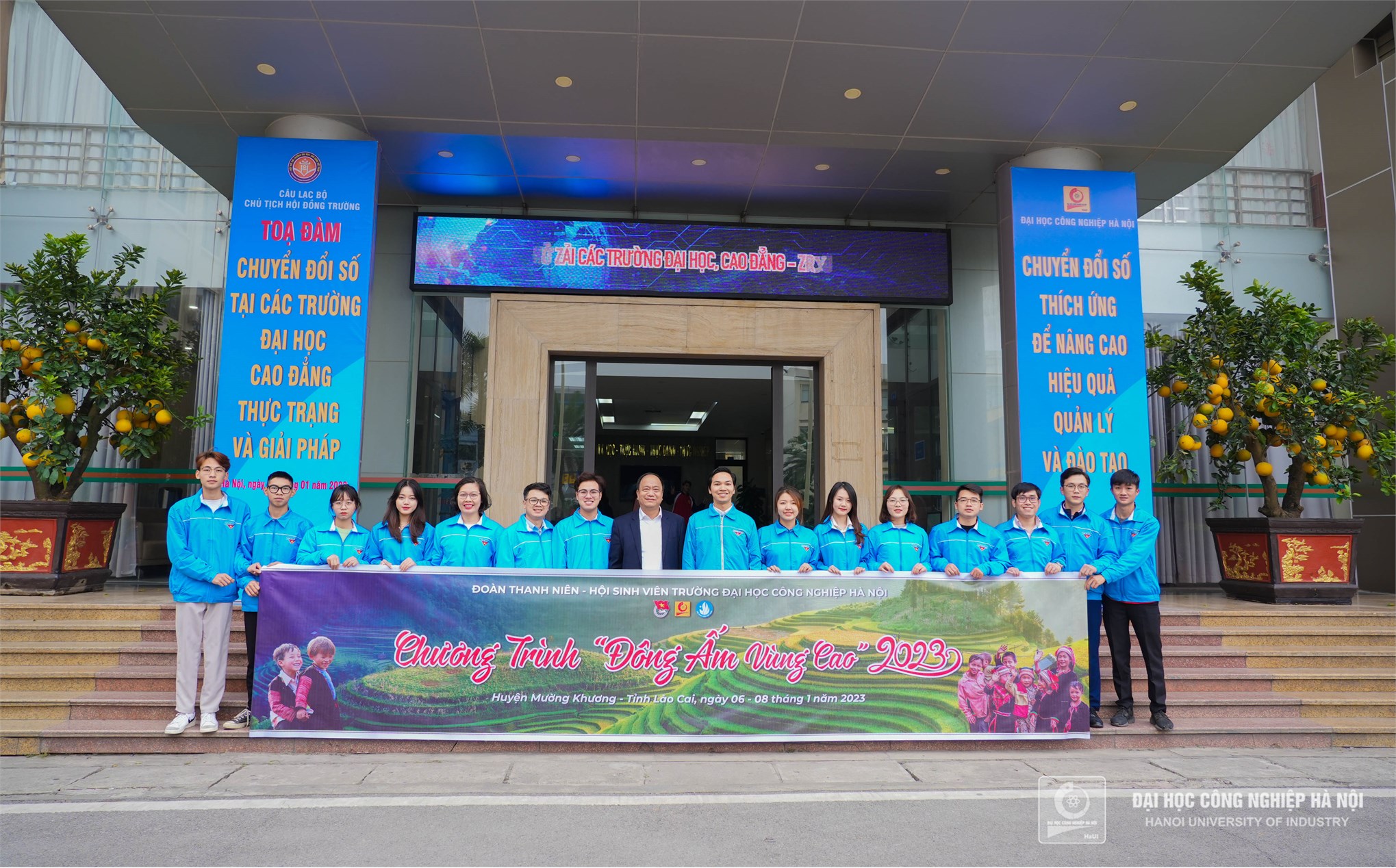 TS.Nguyễn Văn Thiện, Phó Hiệu trưởng cùng Đoàn thanh niên Trường Đại học Công nghiệp Hà Nội ra quân chương trình tình nguyện "Đông ấm vùng cao"