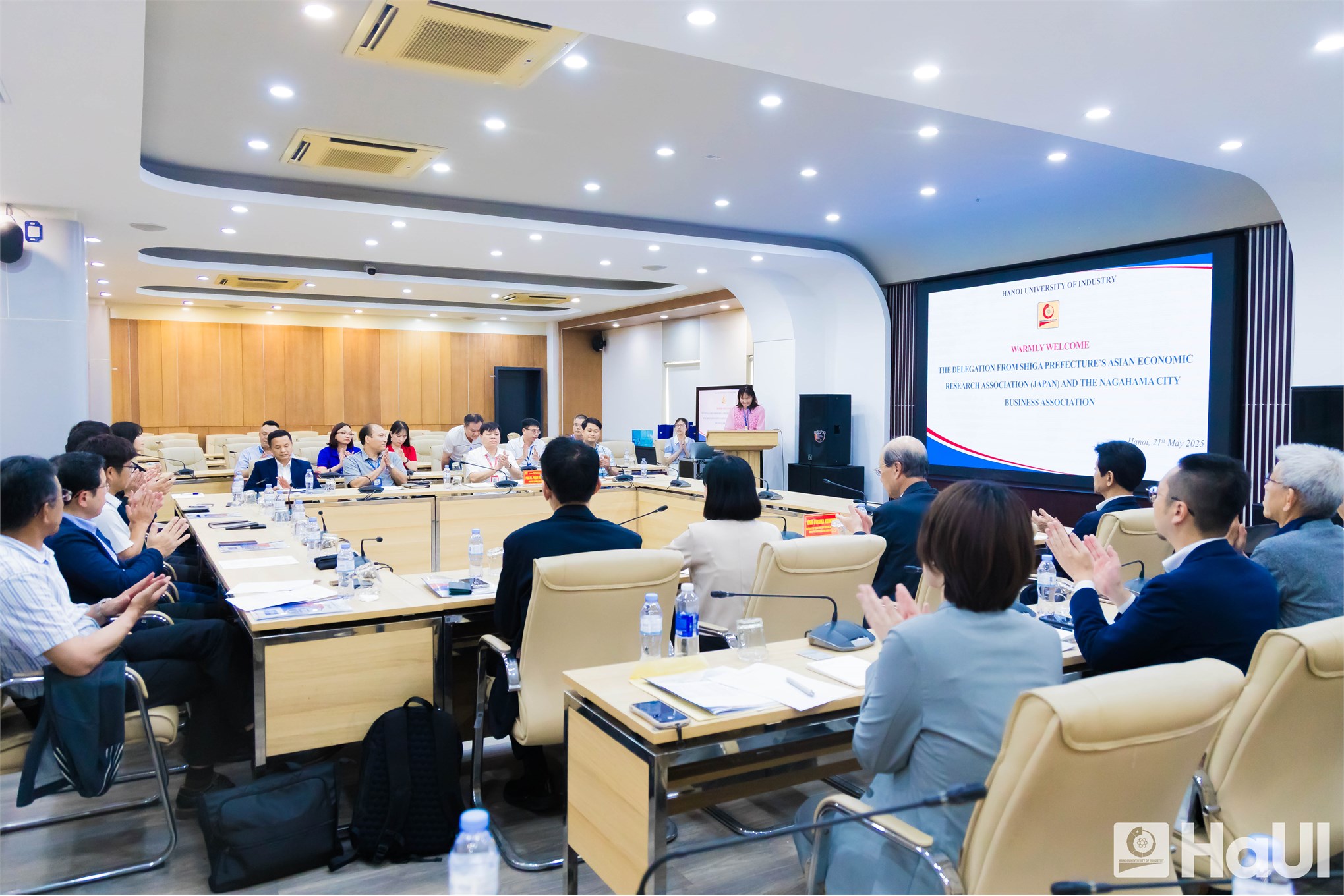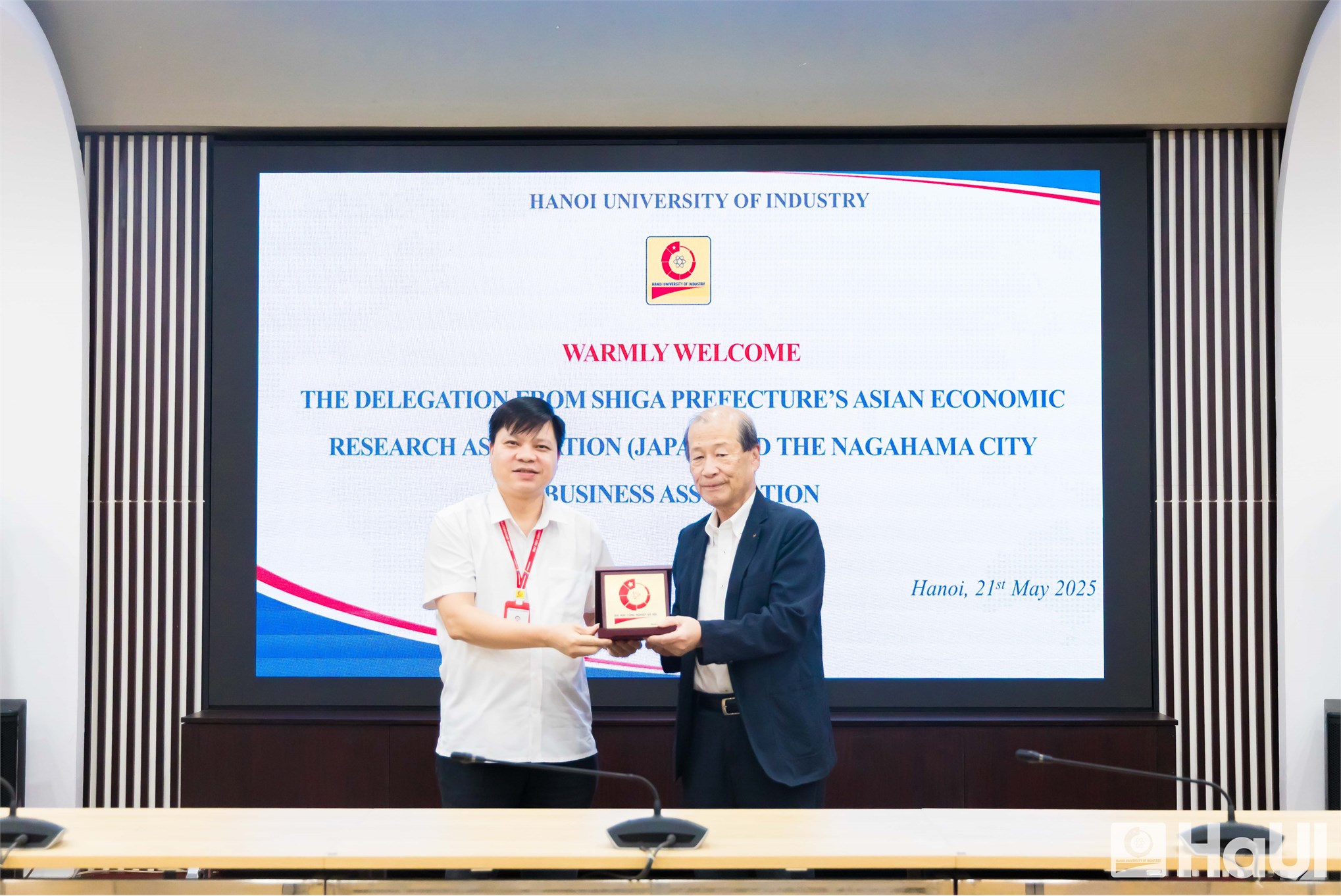 Chiều ngày 21/5, PGS.TS. Phạm Văn Đông – Phó Hiệu trưởng Trường Đại học Công nghiệp Hà Nội (HaUI) đã có buổi tiếp đón và làm việc với đoàn lãnh đạo Hiệp hội Nghiên cứu Kinh tế Châu Á cùng đại diện các doanh nghiệp đến từ tỉnh Shiga và thành phố Nanahama, Nhật Bản. Hai bên đã có những trao đổi và gợi mở những hướng hợp tác về đào tạo nhân lực chất lượng cao trong tương lai.