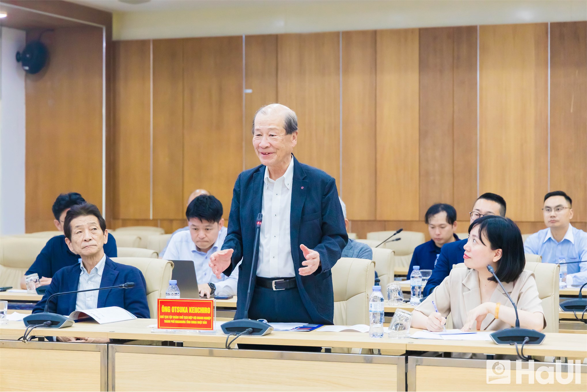 Cảm ơn sự tiếp đón của Trường Đại học Công nghiệp Hà Nội, OTSUKA KEIICHIRO, Chủ tịch hiệp hội Doanh nghiệp thành phố Nagahama tỉnh Shiga, Nhật Bản đánh giá cao chất lượng đào tạo và cơ sở vật chất của nhà trường. Ông OTSUKA KEIICHIRO cho biết: nhiều thành viên trong đoàn đã tới thăm, làm việc với Nhà trường và rất ấn tượng về thái độ, kỹ năng của sinh viên HaUI. Trong lần làm việc này, phía doanh nghiệp Nhật Bản mong muốn có cơ hội tìm hiểu kỹ hơn về chương trình đào tạo, trực tiếp gặp gỡ giảng viên, sinh viên, hướng tới các hoạt động hợp tác thiết thực trong tương lai gần.
