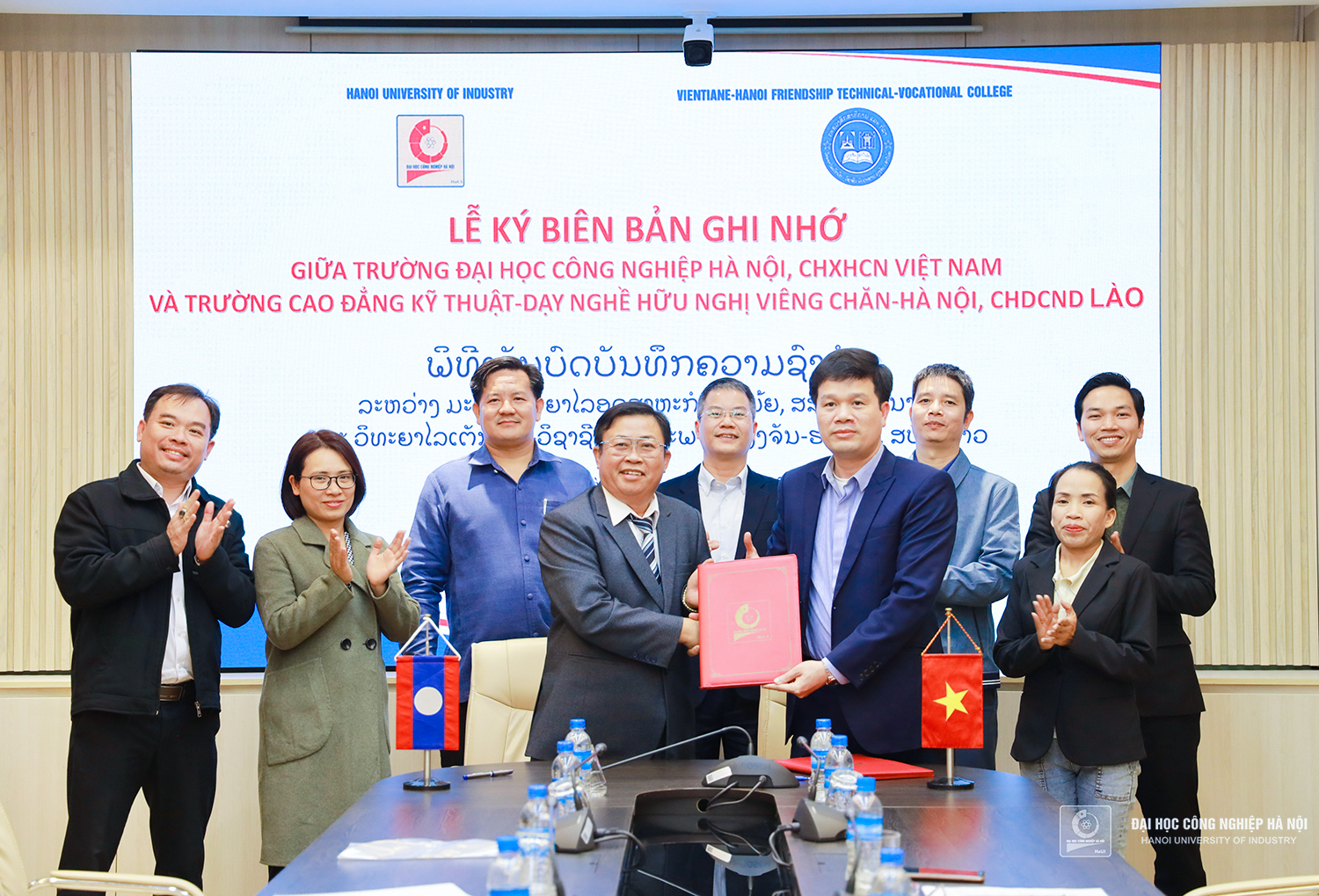 Từ năm 2011, Đại học Công nghiệp Hà Nội và Trường Cao đẳng Kỹ thuật Dạy nghề Hữu nghị Viêng chăn - Hà Nội đã ký kết văn bản thỏa thuận hợp tác song phương. Trong những năm qua, hai bên đã hợp tác hiệu quả và triển khai tốt các chương trình hợp tác đào tạo bậc đại học và sau đại học cho hàng trăm du học sinh Lào.