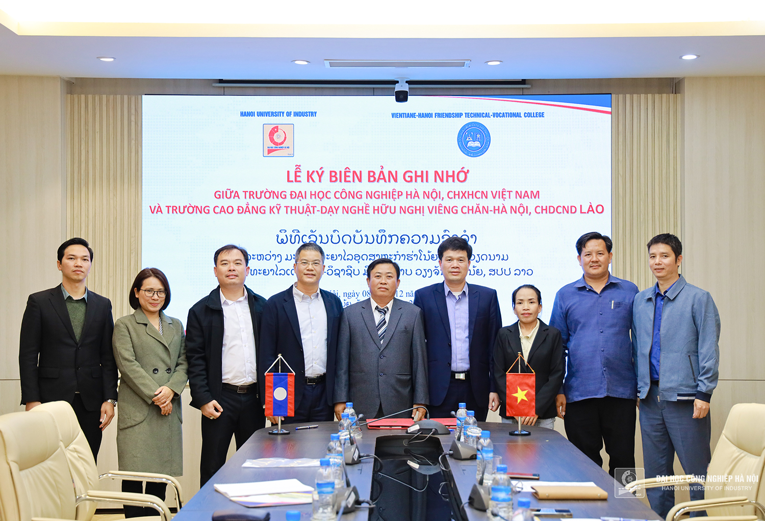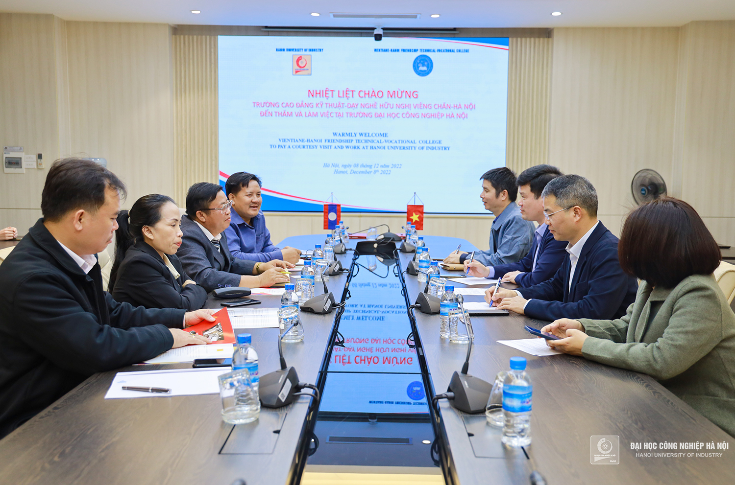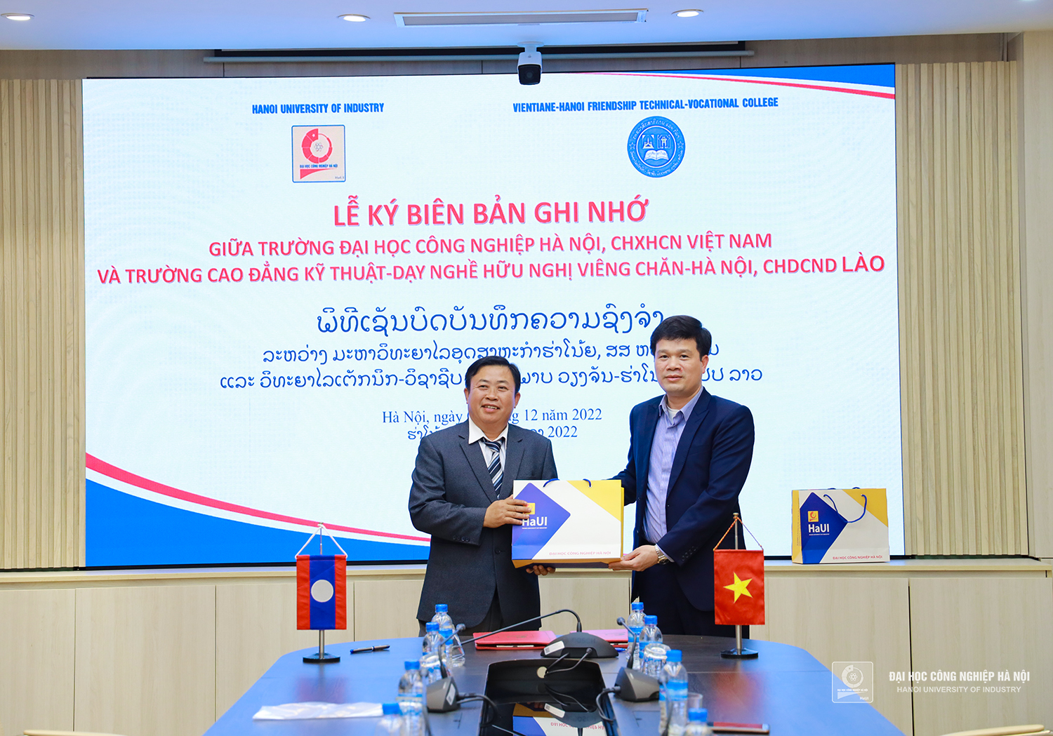 Chiều ngày 08/12/2022, TS.Kiều Xuân Thực - Phó Hiệu trưởng nhà trường chủ trì buổi làm việc và ký kết Biên bản ghi nhớ hợp tác giữa trường Đại học Công nghiệp Hà Nội (HaUI) và trường Cao đẳng Kỹ thuật Dạy nghề Hữu nghị Viêng chăn - Hà Nội, CHDCND Lào (VIHATEC).
