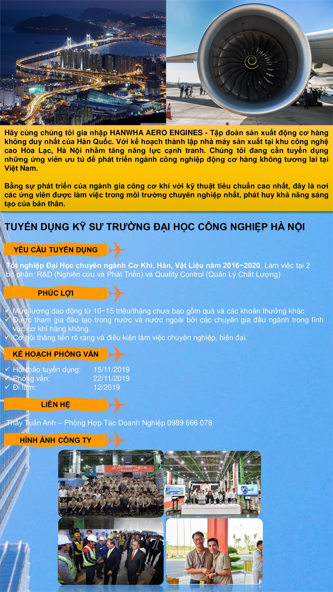 Hội thảo cơ hội thực tập, việc làm tại Công ty TNHH Hanwha Aero Engines Việt Nam