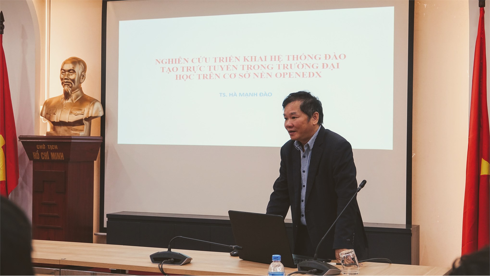 TS. Hà Mạnh Đào trình bày báo cáo “Nghiên cứu triển khai hệ thống đào tạo trực tuyến trong trường đại học trên cơ sở nền OPENEDX”