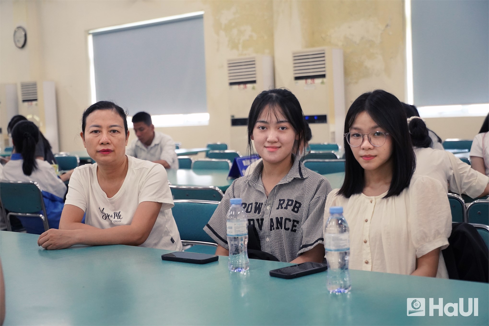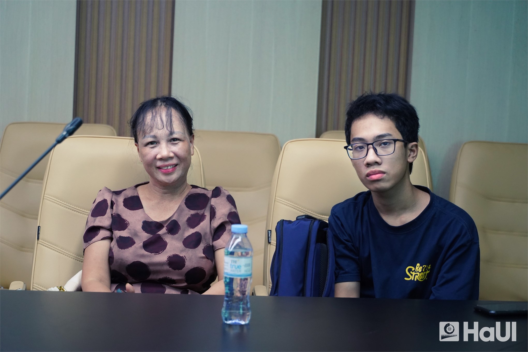 Phụ huynh Phạm Thị Loan và tân sinh viên Đoàn Việt Hà, ngành Khoa học máy tính (CTĐT bằng Tiếng Anh) chia sẻ: Hôm nay đưa con đến ngưỡng cửa đại học, lòng tôi đầy tự hào xen lẫn chút bâng khuâng khi con bắt đầu cuộc sống tự lập. Chỉ mong bốn năm sau lại được đứng ở sân trường này, hạnh phúc nhìn thấy con trưởng thành và vững tin trong ngày lễ tốt nghiệp.