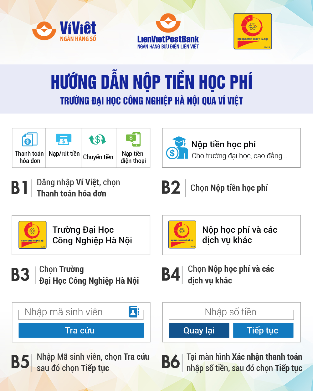 Hướng dẫn sinh viên Đại học Công nghiệp Hà Nội nộp tiền học phí và tiền nhập học qua Ví Việt