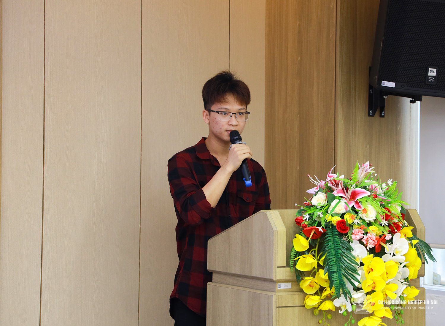Đại diện cho các thí sinh tham dự cuộc thi, sinh viên Nguyễn Công Cao - lớp Cơ khí 4 K13 gửi lời cảm ơn tới Ban Giám hiệu nhà trường, Ban tổ chức cuộc thi và các thầy, cô, đã tạo điều kiện cho sinh viên cơ hội để khám phá kiến thức trí tuệ trong lĩnh vực Cơ học.