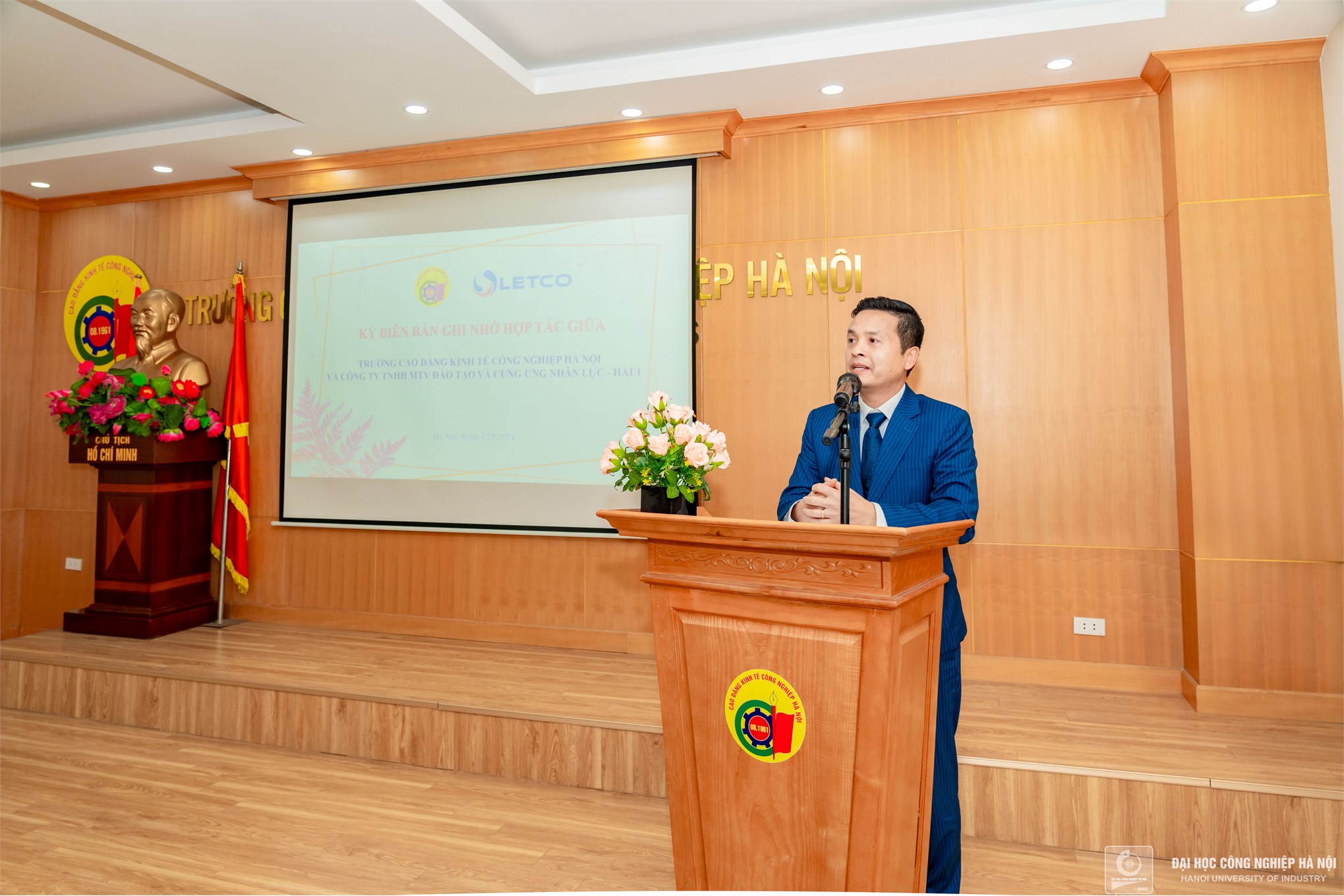 TS.Nguyễn Văn Thiện, Phó Hiệu trưởng Đại học Công nghiệp Hà Nội, Chủ tịch Hội đồng thành viên Công ty LETCO phát biểu tại lễ ký kết
