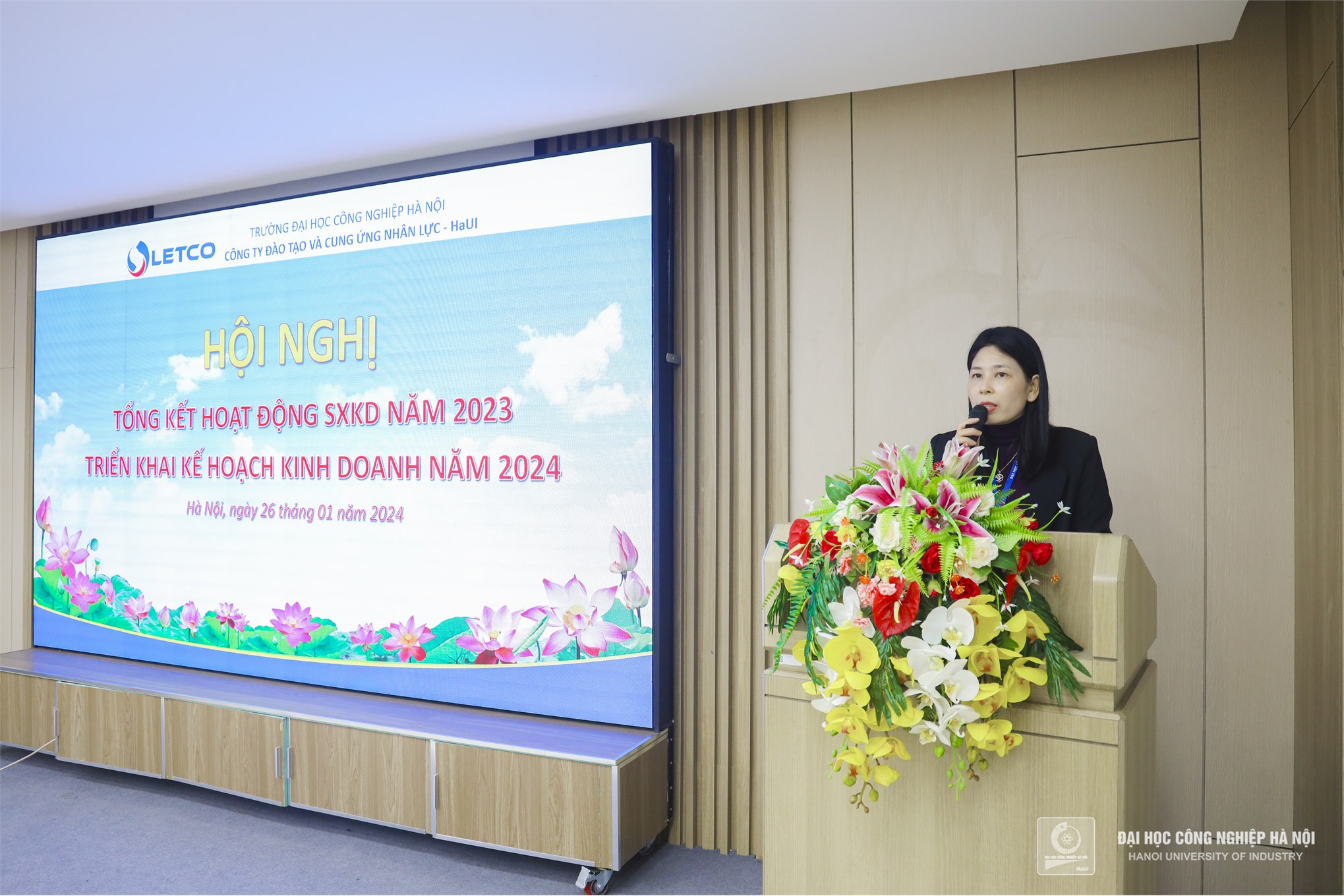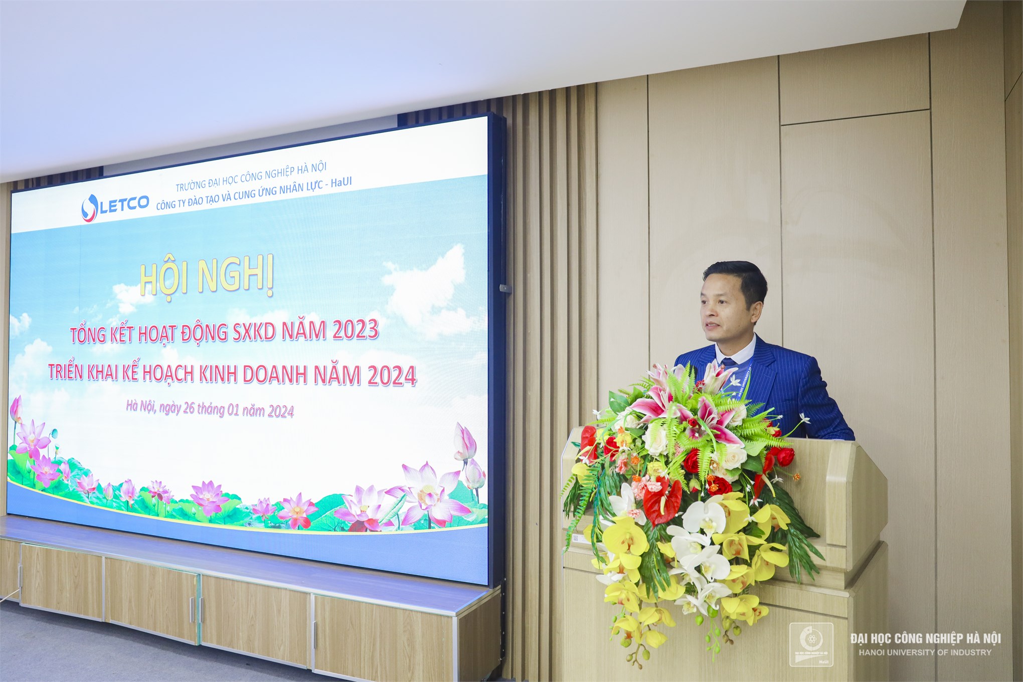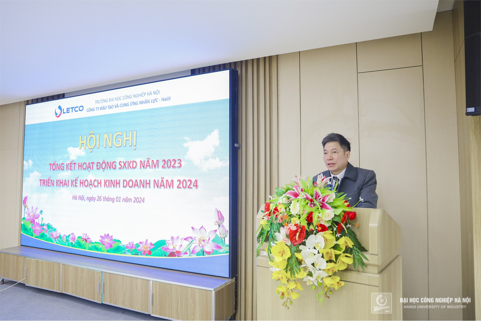Trên cơ sở những thành quả rất đáng tự hào trong năm 2023, TS.Nguyễn Văn Thiện - Trưởng phòng Tổ chức Hành chính HaUI, thành viên Hội đồng thành viên Công ty LETCO nhấn mạnh: Ban lãnh đạo, các phòng ban trong công ty cần đoàn kết, nhất trí cao; đồng thời hoàn thiện bộ máy, tăng cường công tác đào tạo, bồi dưỡng phát triển đội ngũ để xứng tầm với yêu cầu trong thời kỳ mới. Bên cạnh đó, công ty LETCO cần tiếp tục khẳng định vị trí, vai trò, thương hiệu của mình trong thị trường xuất khẩu lao động, hoàn thành sứ mệnh là khâu khép kín trong quy trình đào tạo theo đúng chủ trương của Đại học Công nghiệp Hà Nội, là cầu nối đưa sinh viên của Nhà trường ra nước ngoài học tập và làm việc. Đẩy mạnh công tác truyền thông nhằm phát huy sức mạnh của thương hiệu LETCO - Doanh nghiệp thuộc Đại học Công nghiệp Hà Nội, phối hợp chặt chẽ với các đơn vị đào tạo trong công tác tuyển sinh nhằm tăng tỷ lệ sinh viên Nhà trường và sinh viên các trường cao đẳng, đại học tham gia chương trình du học, xuất khẩu lao động của Công ty.