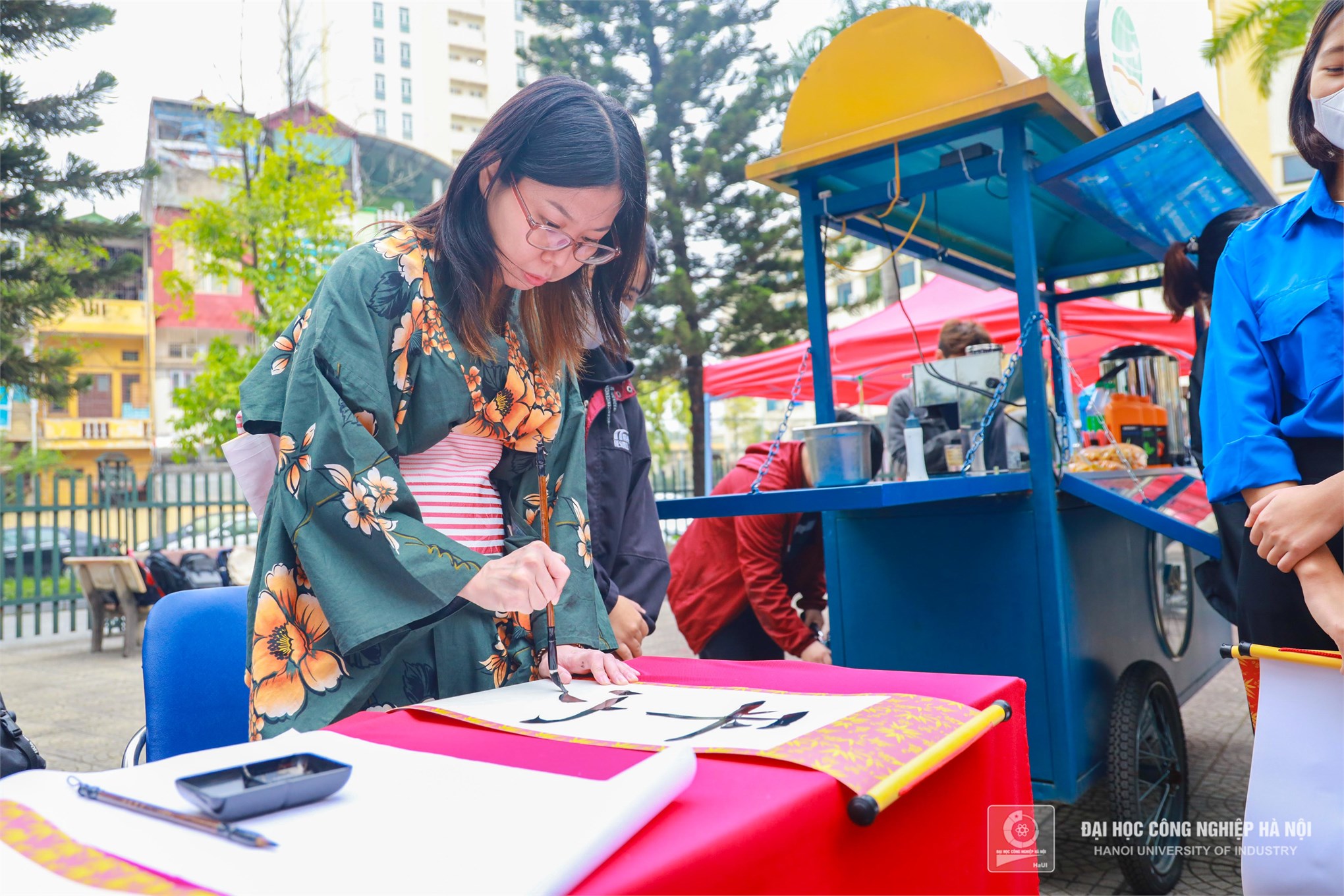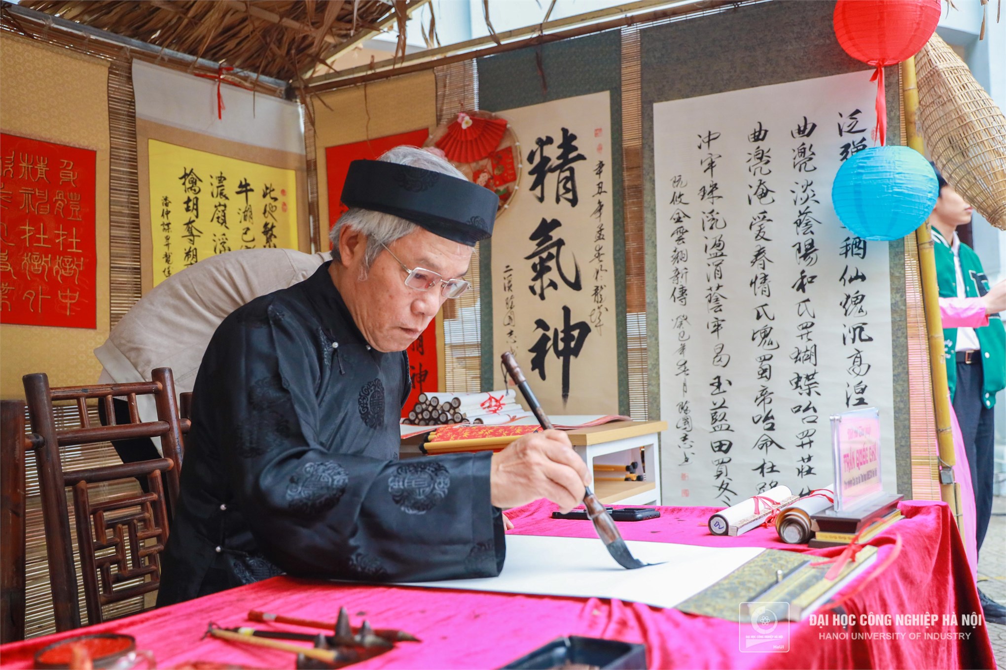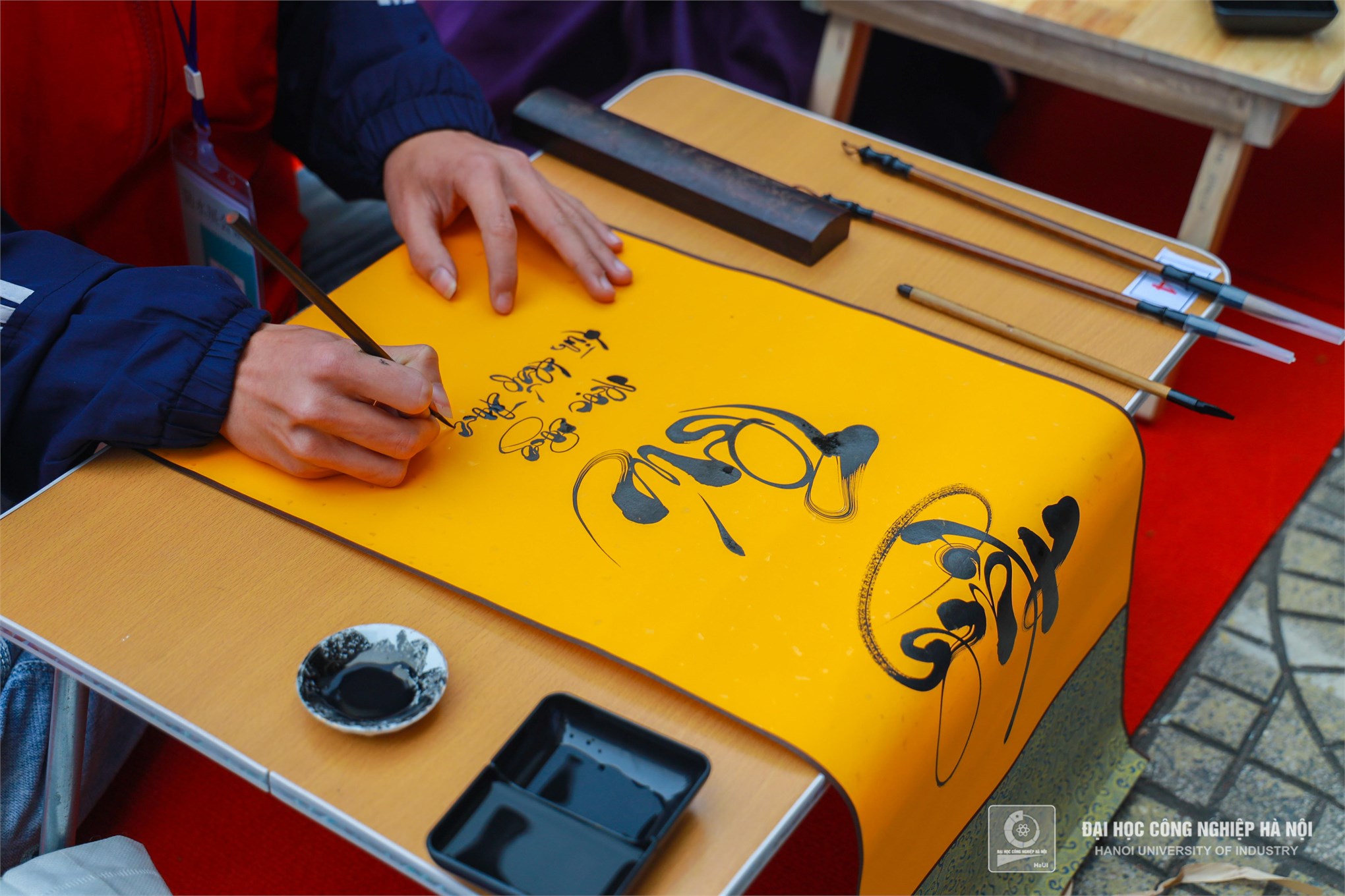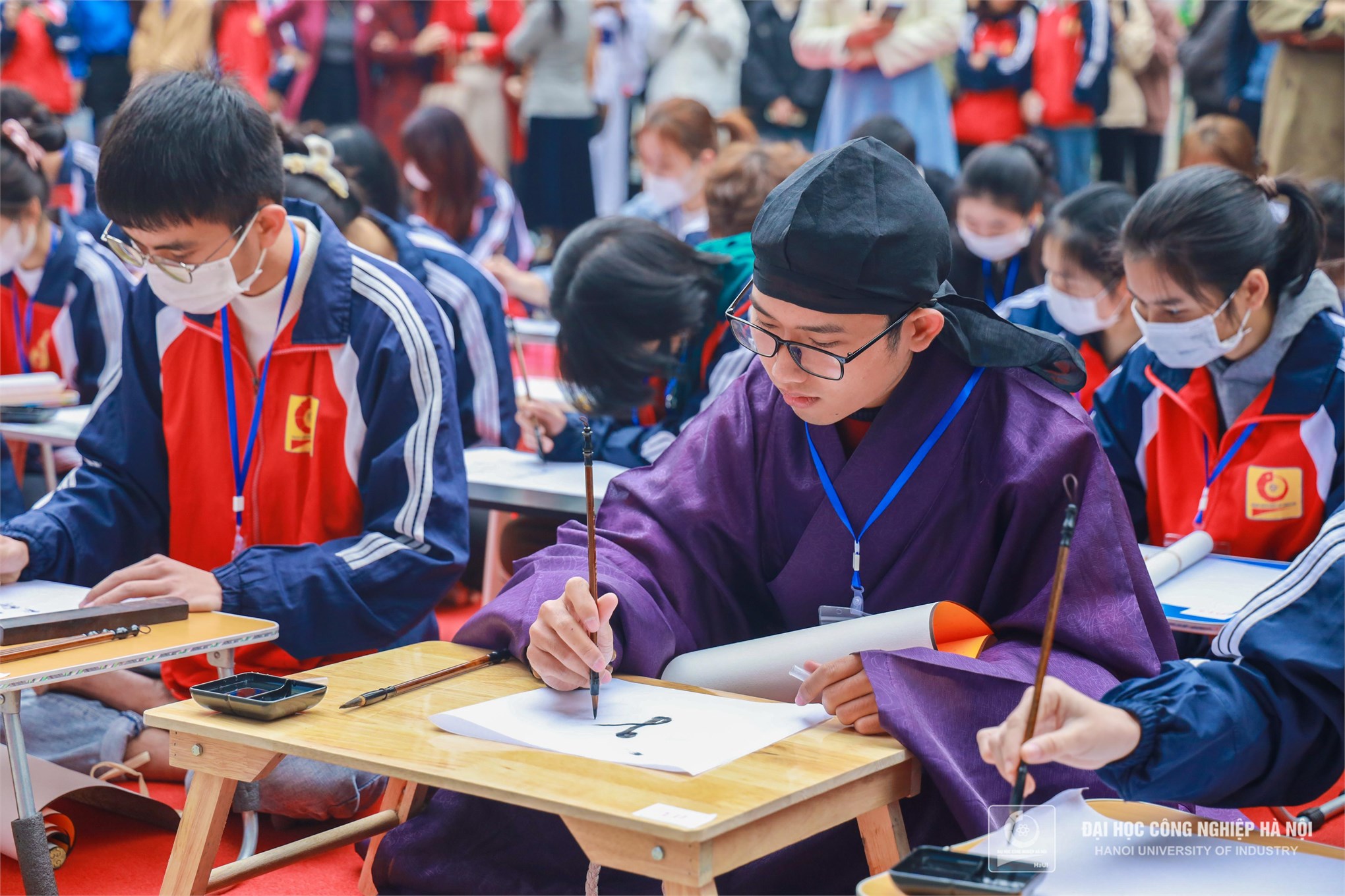 Trong không gian ngập tràn hương sắc của mùa xuân, gần 100 sinh viên từ các đơn vị đào tạo thuộc Trường Đại học Công nghiệp Hà Nội thả hồn, trao tâm thảo những nét chữ thư pháp. Nghiên sầu thơm thảo hòa vào từng nét bút, nét chữ uốn lượn trên những mực tàu giấy đỏ. Xuyên suốt cả một chiều dài lịch sử, nét văn hóa ấy vẫn được duy trì và phát triển cho đến ngày nay.