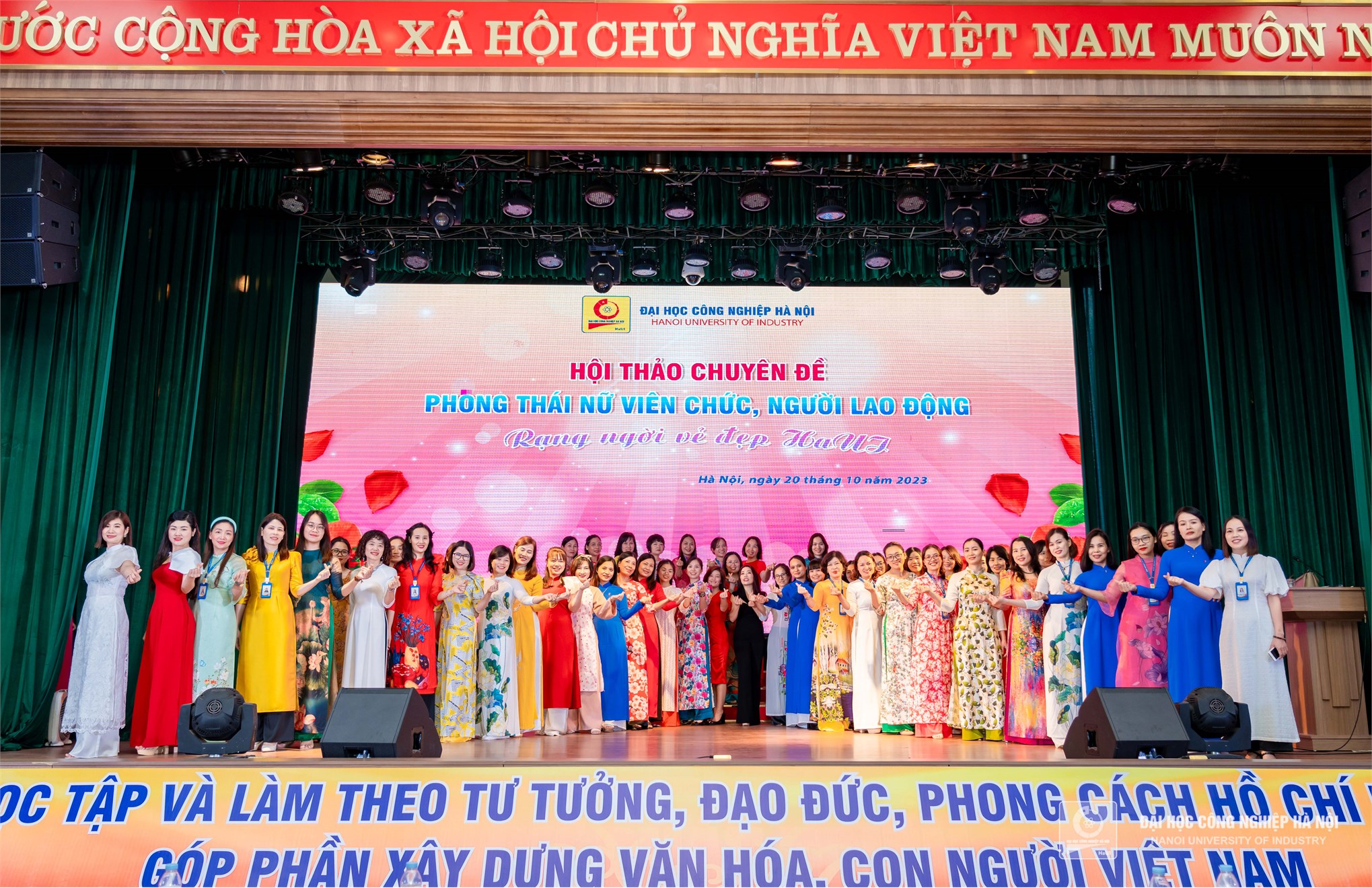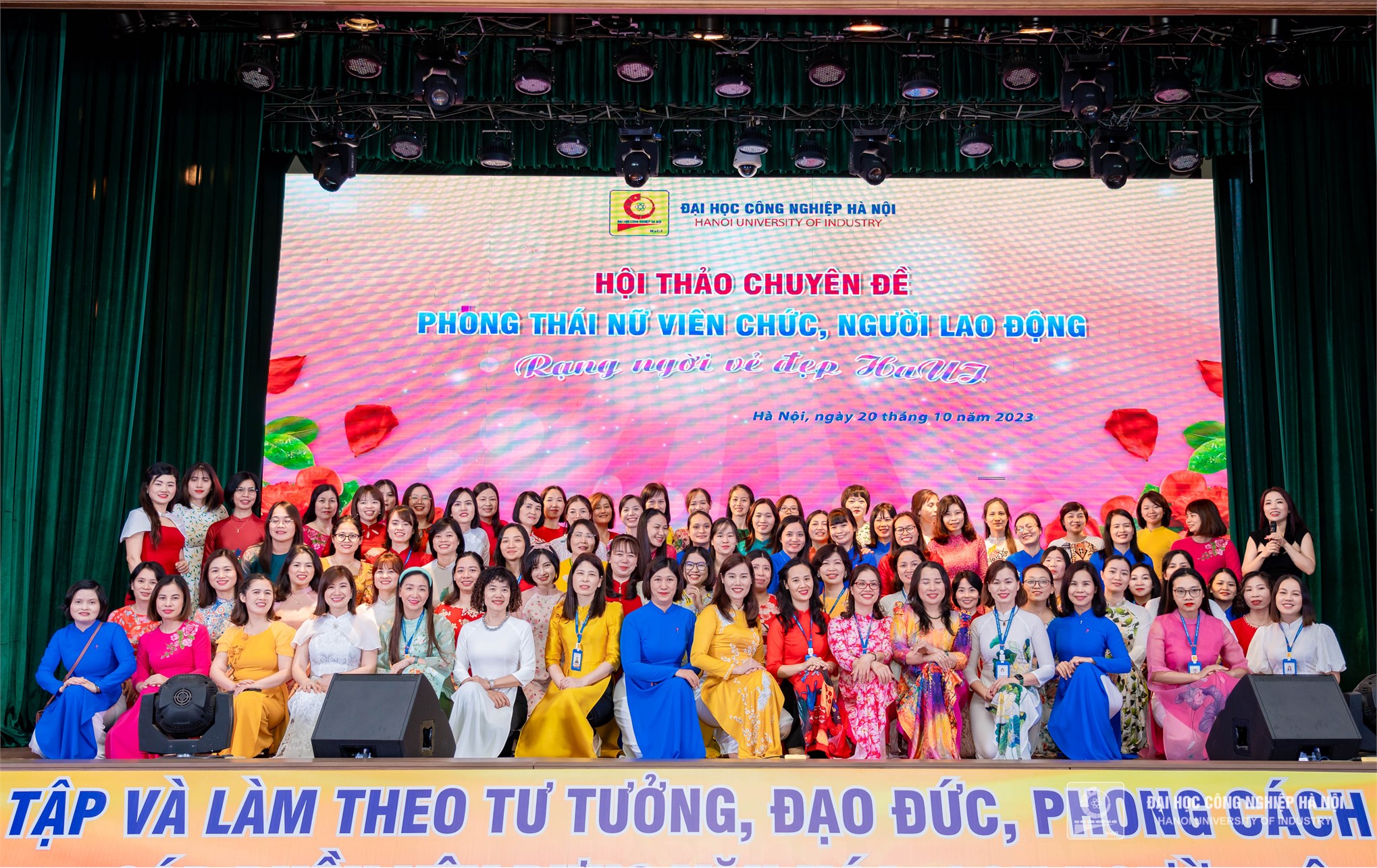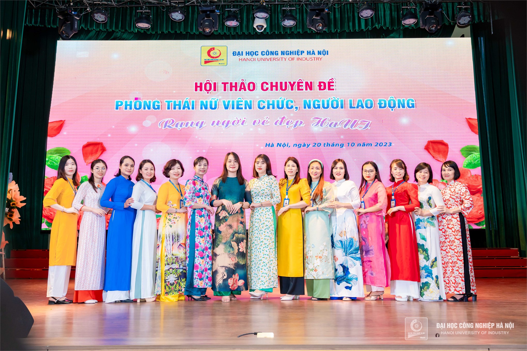 Sáng ngày 20/10, nữ viên chức, người lao động Đại học Công nghiệp Hà Nội rực rỡ, duyên dáng trong tà áo dài thân thương, cùng nhau tham dự buổi Hội thảo với chủ đề “Phong thái nữ viên chức, người lao động – rạng ngời vẻ đẹp HaUI”