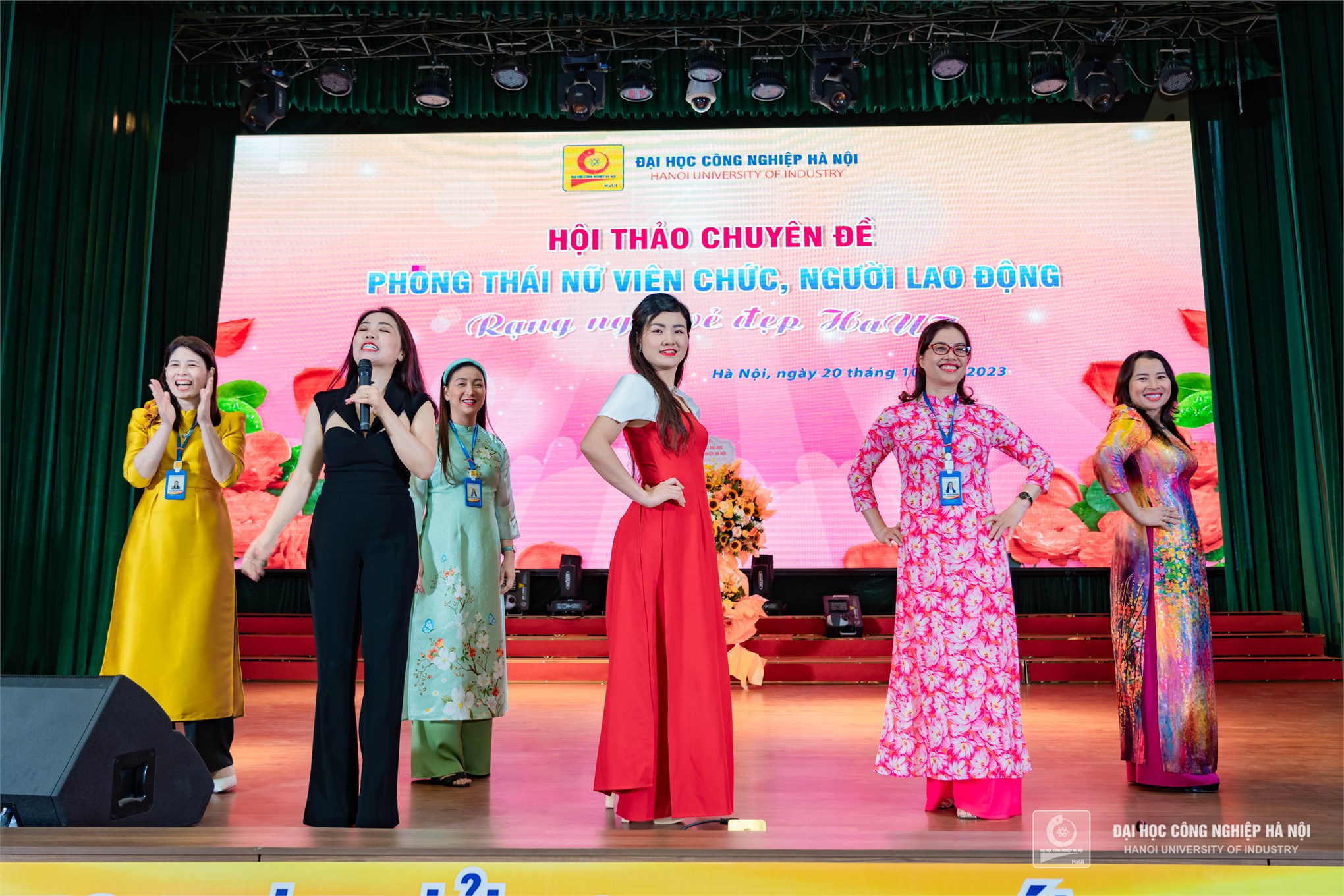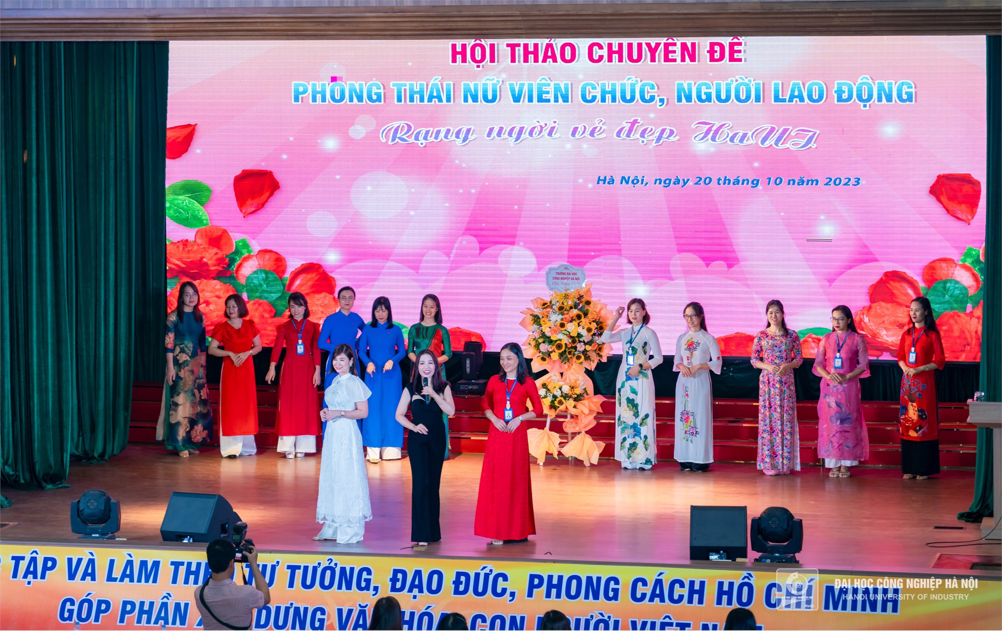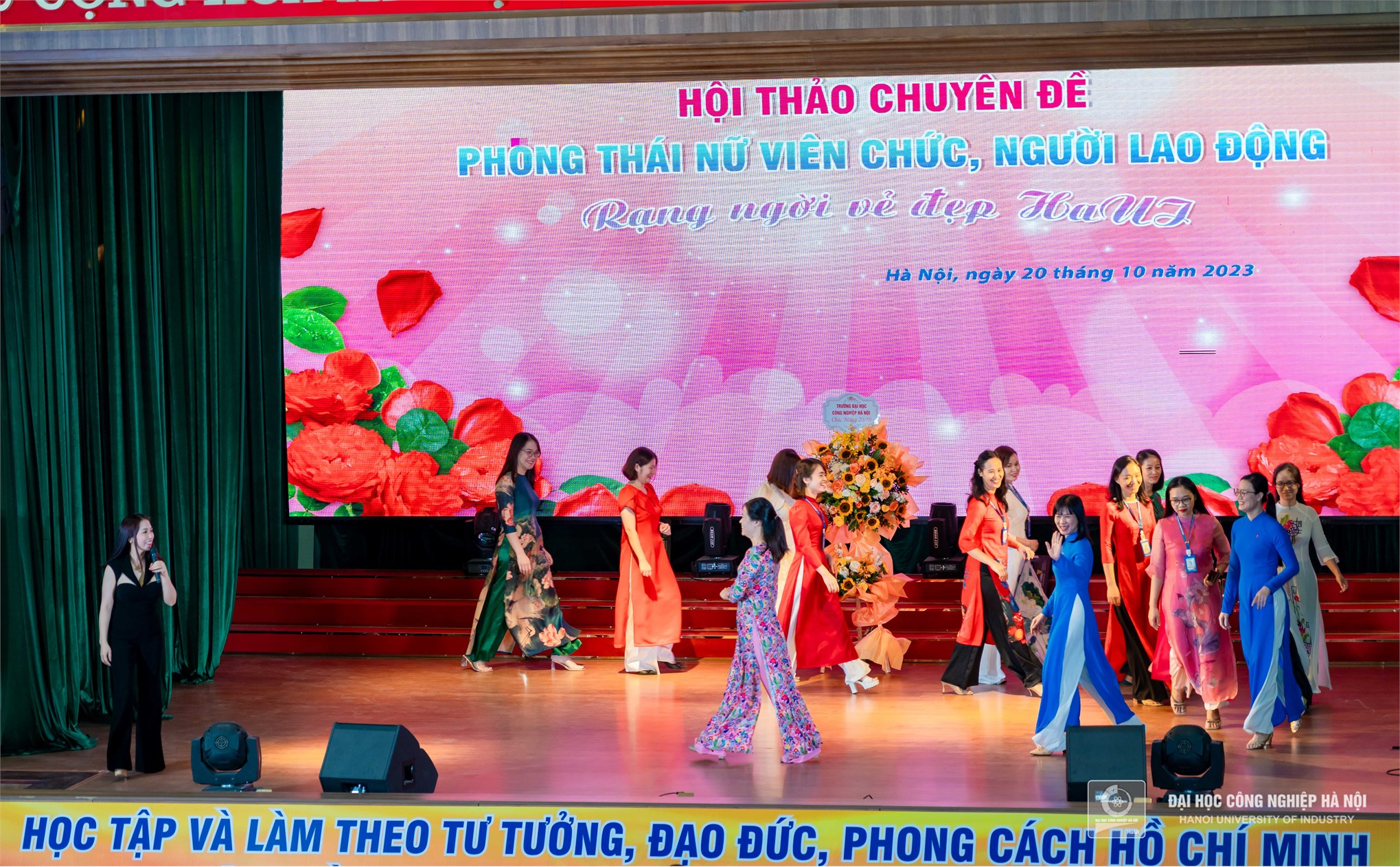 Sáng ngày 20/10, nữ viên chức, người lao động Đại học Công nghiệp Hà Nội rực rỡ, duyên dáng trong tà áo dài thân thương, cùng nhau tham dự buổi Hội thảo với chủ đề “Phong thái nữ viên chức, người lao động – rạng ngời vẻ đẹp HaUI”