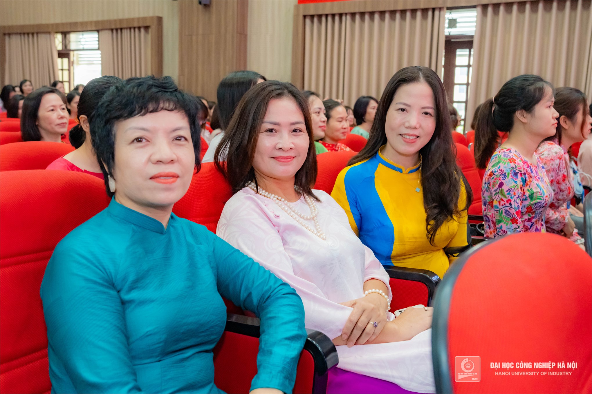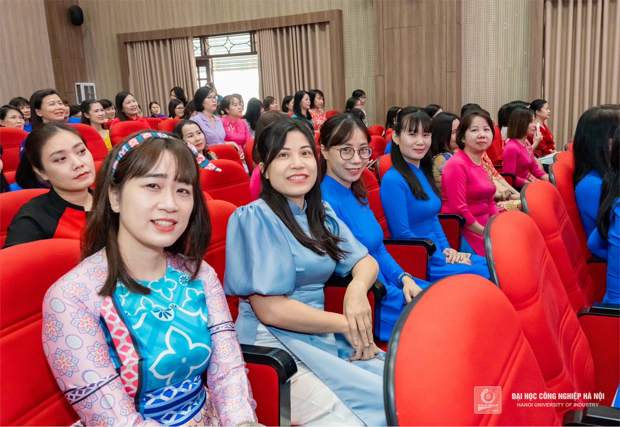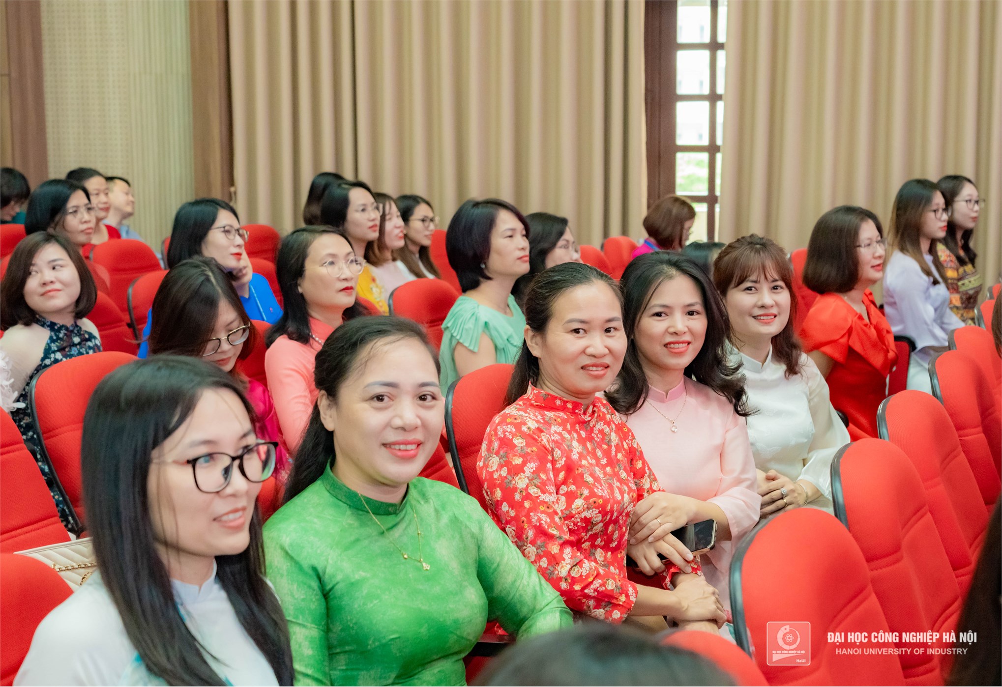 Thầy Phó Hiệu trưởng cũng khẳng định: Lãnh đạo Nhà trường luôn quan tâm, chia sẻ và tạo mọi điều kiện thuận lợi nhất để chị em có cơ hội học tập, phấn đấu, cống hiến, phát triển sự nghiệp, để nữ viên chức, người lao động và nữ sinh Đại học Công nghiệp Hà Nội ngày càng tỏa sáng cả ở nơi làm việc, học tập cũng như trong gia đình.