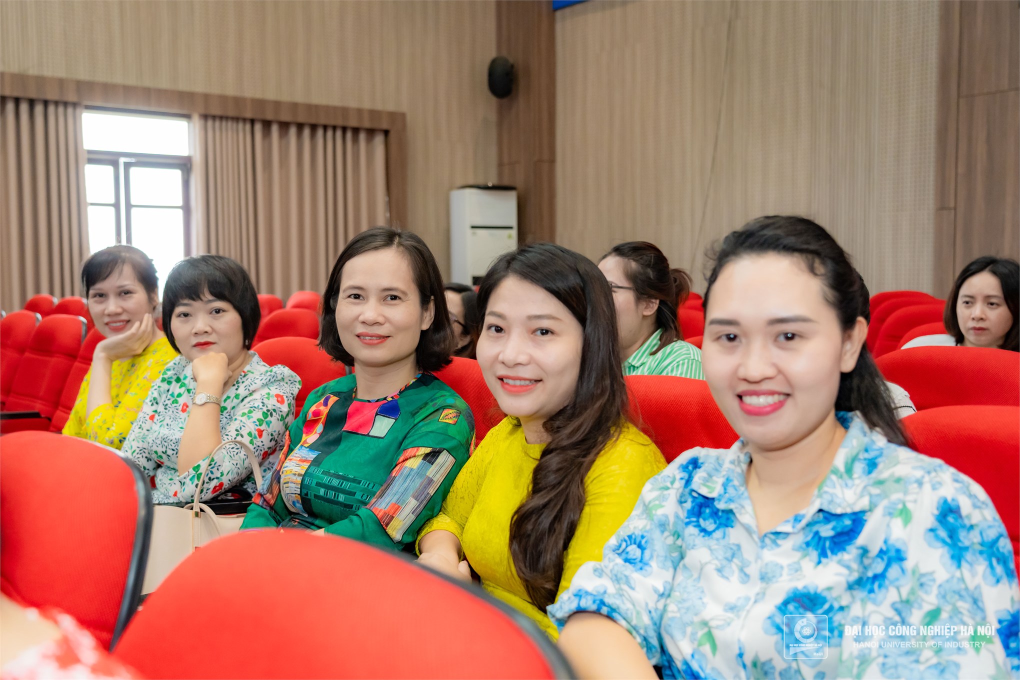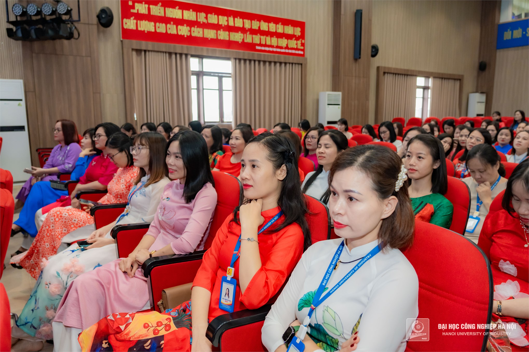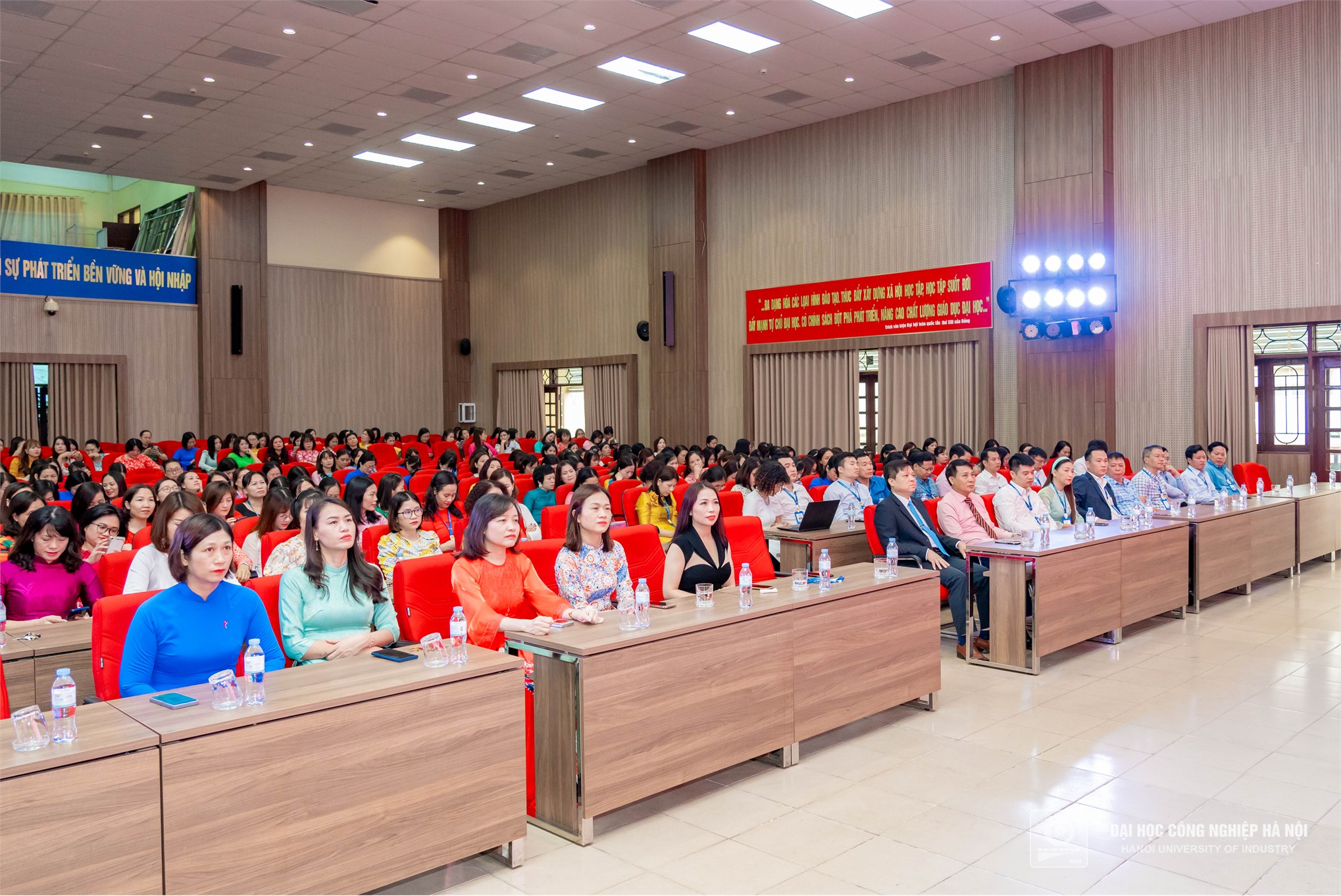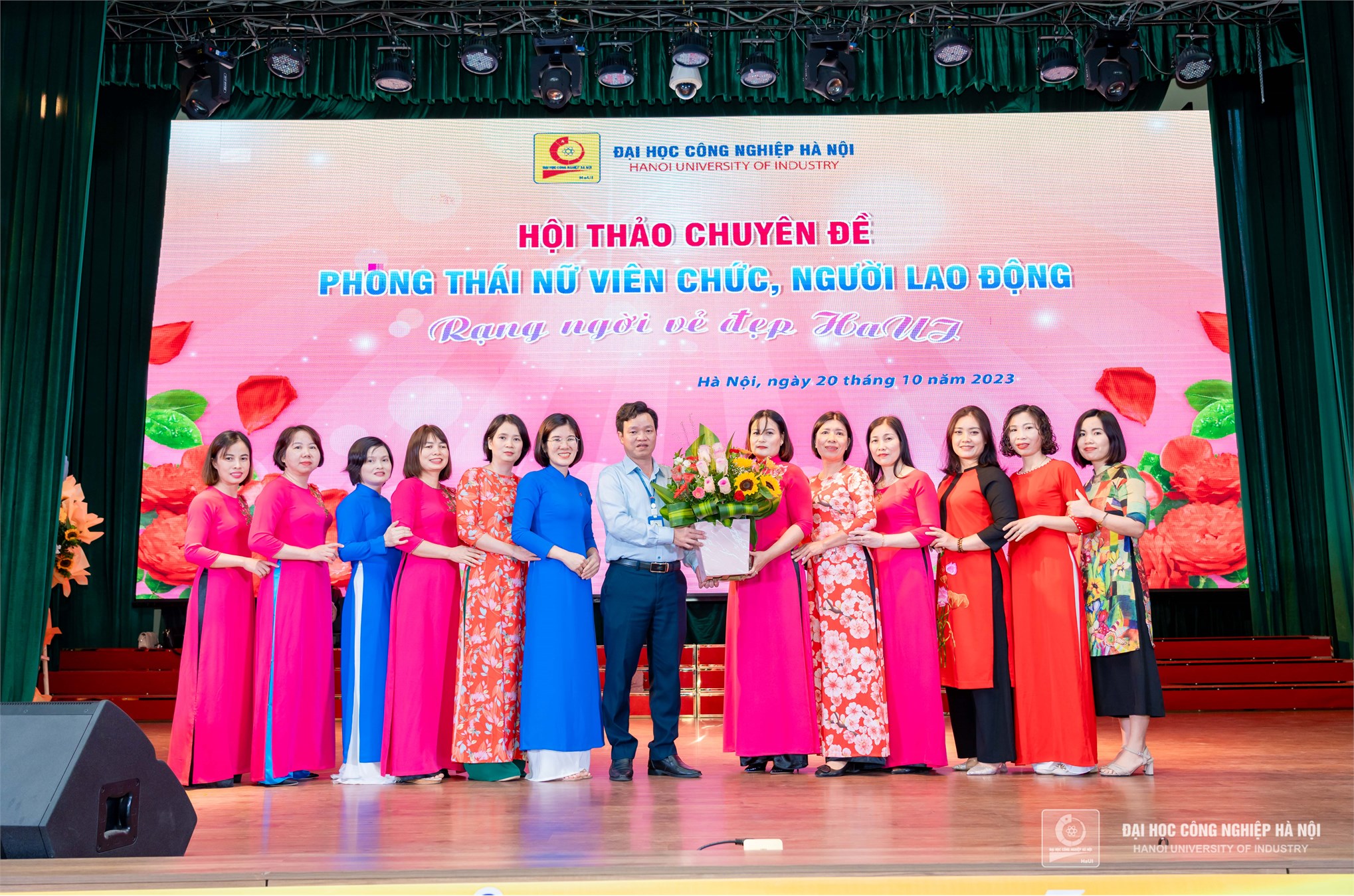 Thầy Phó Hiệu trưởng cũng khẳng định: Lãnh đạo Nhà trường luôn quan tâm, chia sẻ và tạo mọi điều kiện thuận lợi nhất để chị em có cơ hội học tập, phấn đấu, cống hiến, phát triển sự nghiệp, để nữ viên chức, người lao động và nữ sinh Đại học Công nghiệp Hà Nội ngày càng tỏa sáng cả ở nơi làm việc, học tập cũng như trong gia đình.
