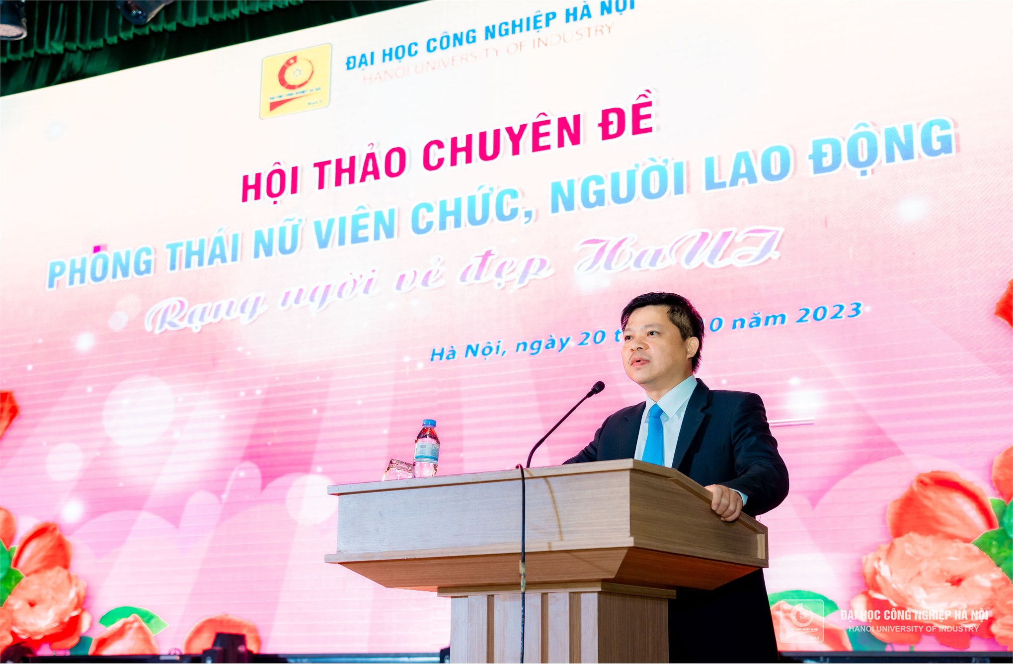 Phát biểu tại Hội thảo, PGS.TS. Phạm Văn Đông - Phó Hiệu trưởng, Chủ tịch Công đoàn trường chúc mừng nữ viên chức, người lao động nhà trường, ghi nhận và đánh giá cao kết quả hoạt động của Ban nữ công và nữ viên chức, người lao động; biểu dương những đóng góp quan trọng của chị em vào thành tích của Nhà trường trong những năm qua.