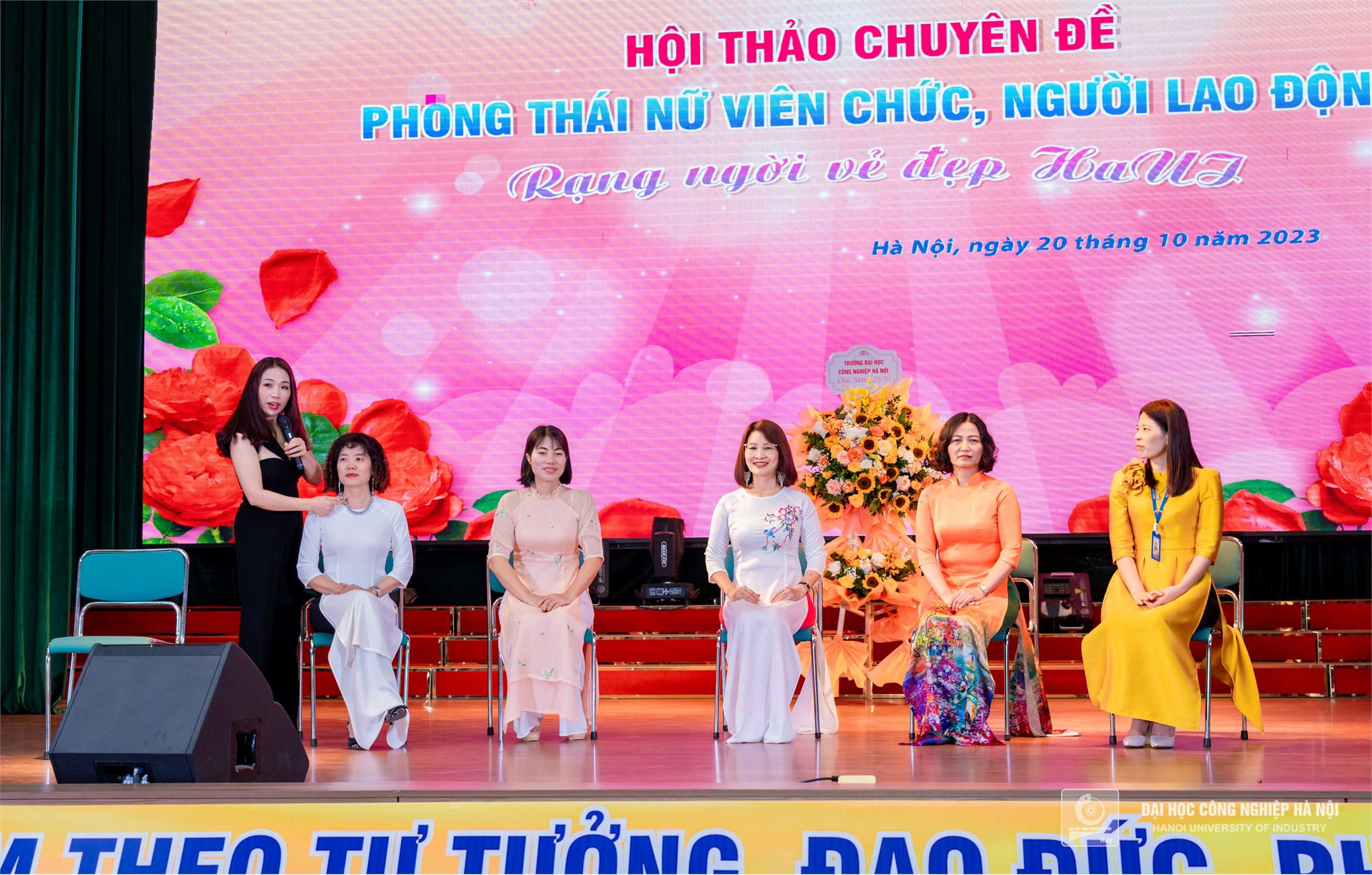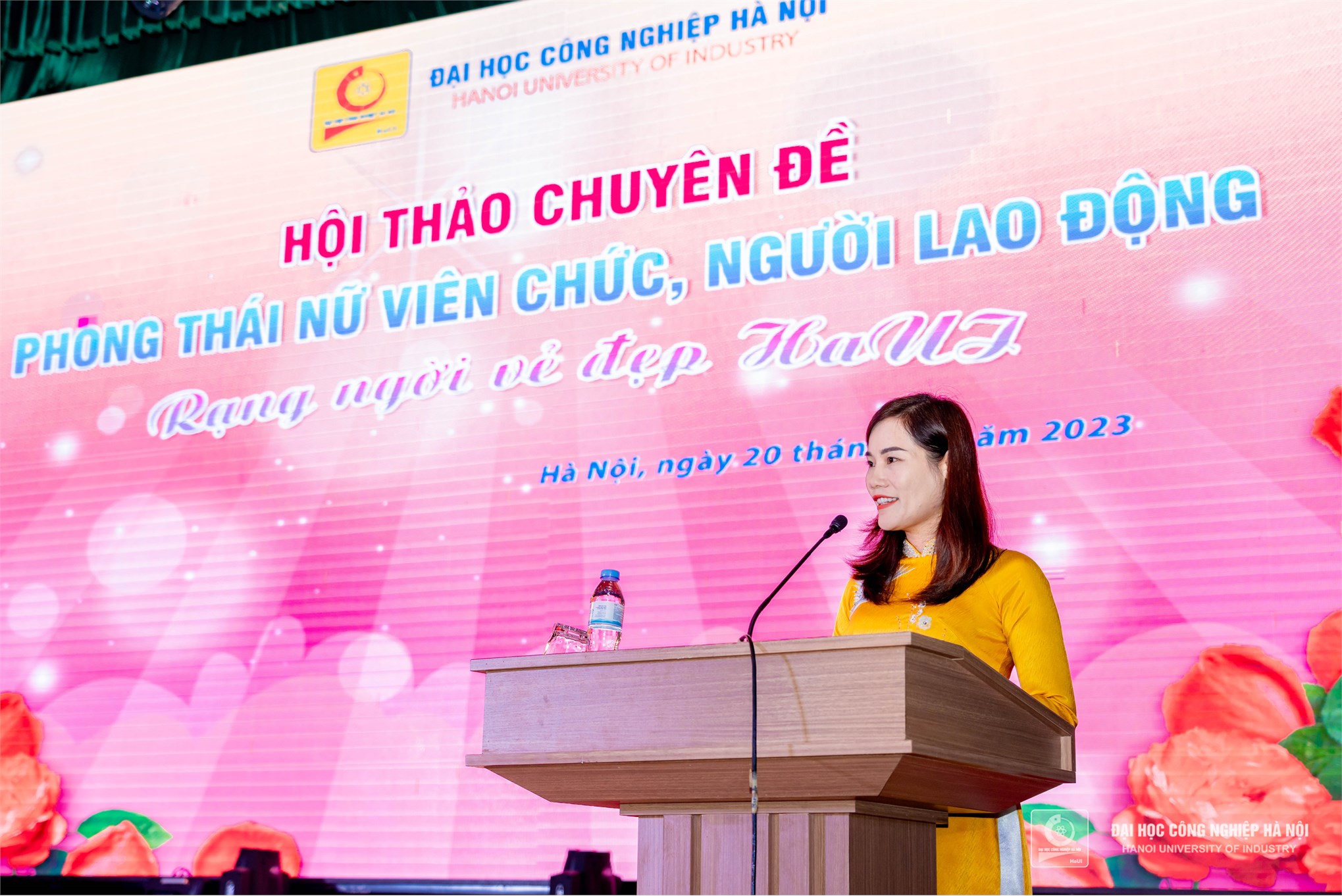 Chia sẻ tại Hội thảo, TS. Nguyễn Thị Nguyệt Dung - Trưởng ban nữ công nhà trường nhấn mạnh: Chúng ta tự hào là những người mẹ, người chị, người con - những người phụ nữ Việt Nam, hiện thân của "tứ đức", là những gương sáng "giỏi việc nước, đảm việc nhà". Với bản sắc, nét duyên của người Phụ nữ Việt Nam, nữ viên chức, người lao động Trường ĐHCNHN đã phát huy truyền thống, nỗ lực phát triển bản thân, khẳng định năng lực, vẻ đẹp của người phụ nữ thời hiện đại nhưng vẫn gìn giữ nét văn hóa của người phụ nữ ngành giáo dục.