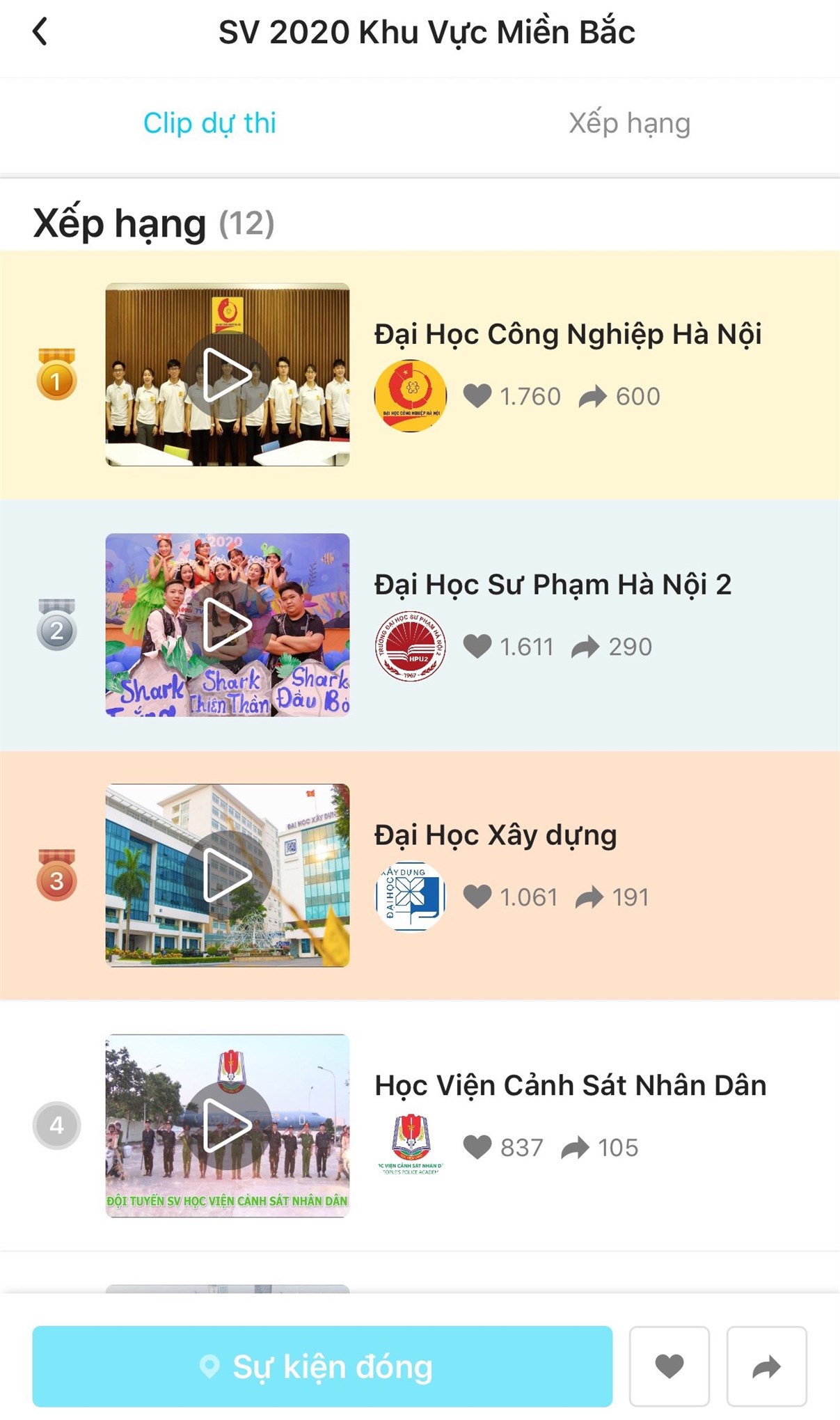 Bước 3: Chọn sự kiện“SV2020 khu vực miền Bắc”, tiếp tục kéo chọn "Xem thêm bài đăng", thực hiện bình chọn bằng cách Click vào phần video dự thi của đội SV2020 của Trường Đại học Công nghiệp Hà Nội.