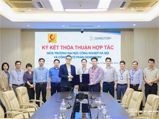 TS.Trần Ngọc Đức, Phó Hiệu trưởng Trường Ngoại ngữ Du lịch (HaUI) và Ông Du Jun- Giám đốc nhân sự Luxshare ICT VN trao Giải Nhất cho Đại học Hùng Vương