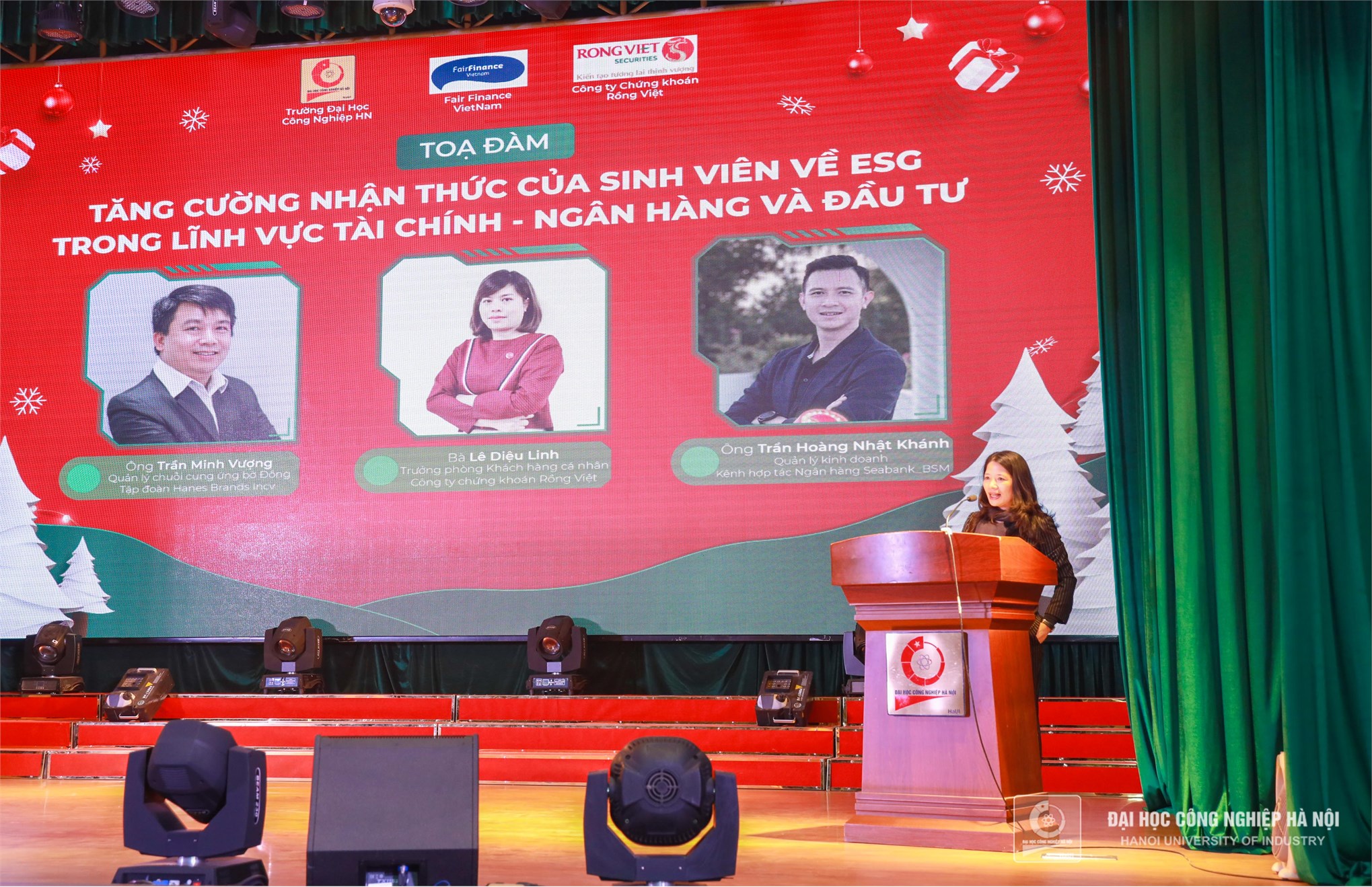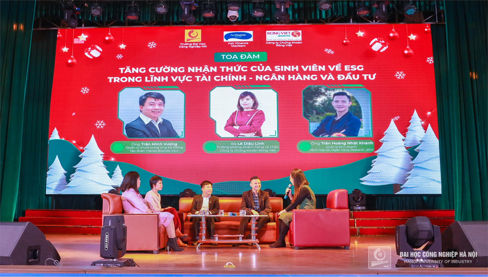 Ngày 26/12, Tọa đàm “Tăng cường nhận thức của sinh viên về ESG trong lĩnh vực Tài chính – Ngân hàng và Đầu tư” do Khoa Quản lý kinh doanh, Trường Đại học Công nghiệp Hà Nội tổ chức đã diễn ra với sự tham gia của các chuyên gia hàng đầu về ESG đến từ các ngân hàng thương mại, doanh nghiệp, công ty chứng khoán và tổ chức Oxfam Việt Nam.
