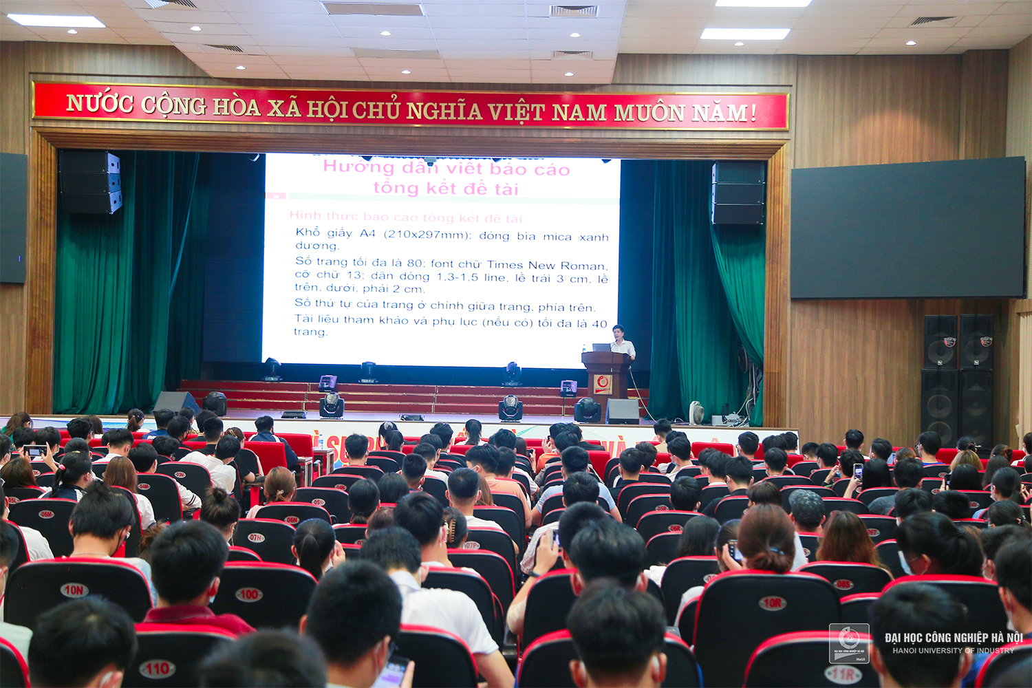 Nhằm giúp sinh viên nâng cao năng lực nghiên cứu khoa học, đồng thời kiểm tra tiến độ thực hiện các đề tài sinh viên nghiên cứu khoa học năm học 2021 - 2022, sáng ngày 28/4/2022, Đại học Công nghiệp Hà Nội tổ chức tập huấn viết báo cáo khoa học cho sinh viên.