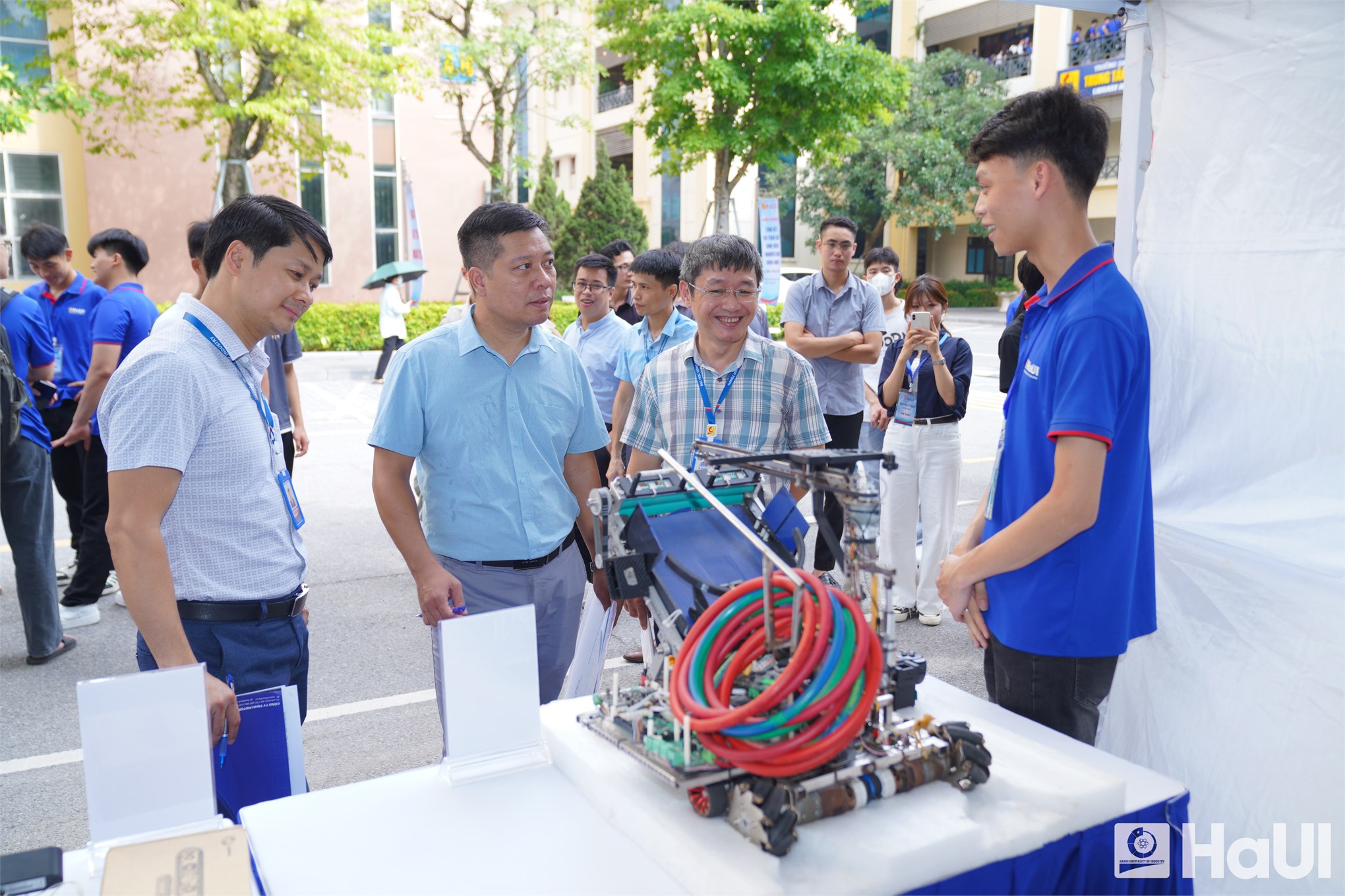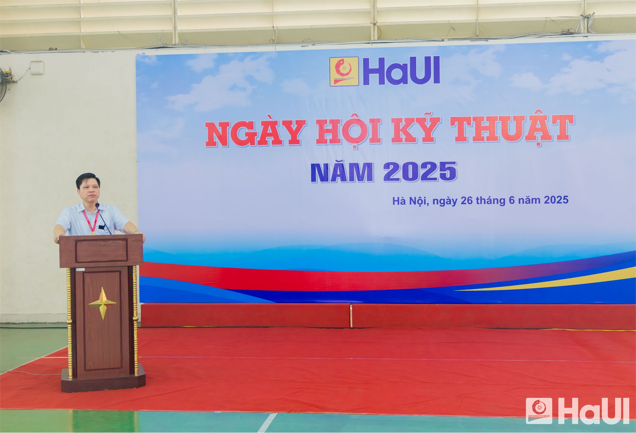Phát biểu khích lệ sinh viên, PGS.TS. Phạm Văn Đông - Phó Hiệu trưởng HaUI khẳng định: Ngày hội kỹ thuật là sân chơi học thuật hấp dẫn, là nơi khơi nguồn những ý tưởng đổi mới, là cầu nối giữa nhà trường và doanh nghiệp, giữa giảng đường và thực tiễn. Nhà trường luôn tin tưởng, với niềm đam mê nghiên cứu khoa học và sự đồng hành của thầy cô, doanh nghiệp, các bạn sinh viên sẽ là những người tạo nên tương lai công nghệ của đất nước.
