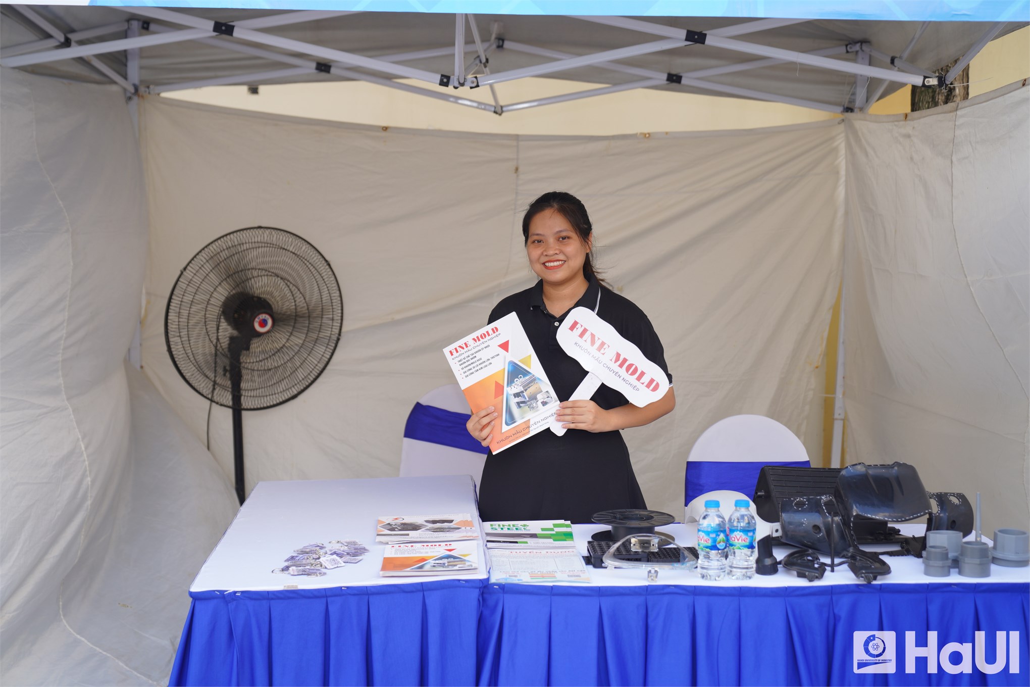 Điểm nhấn của ngày hội là khu vực trưng bày sản phẩm công nghệ đến từ 5 doanh nghiệp, nơi giới thiệu những thiết bị, công nghệ mới, giải pháp kỹ thuật tiên tiến - tạo cơ hội để sinh viên tiếp cận thực tiễn, giao lưu và học hỏi từ các chuyên gia trong ngành.
