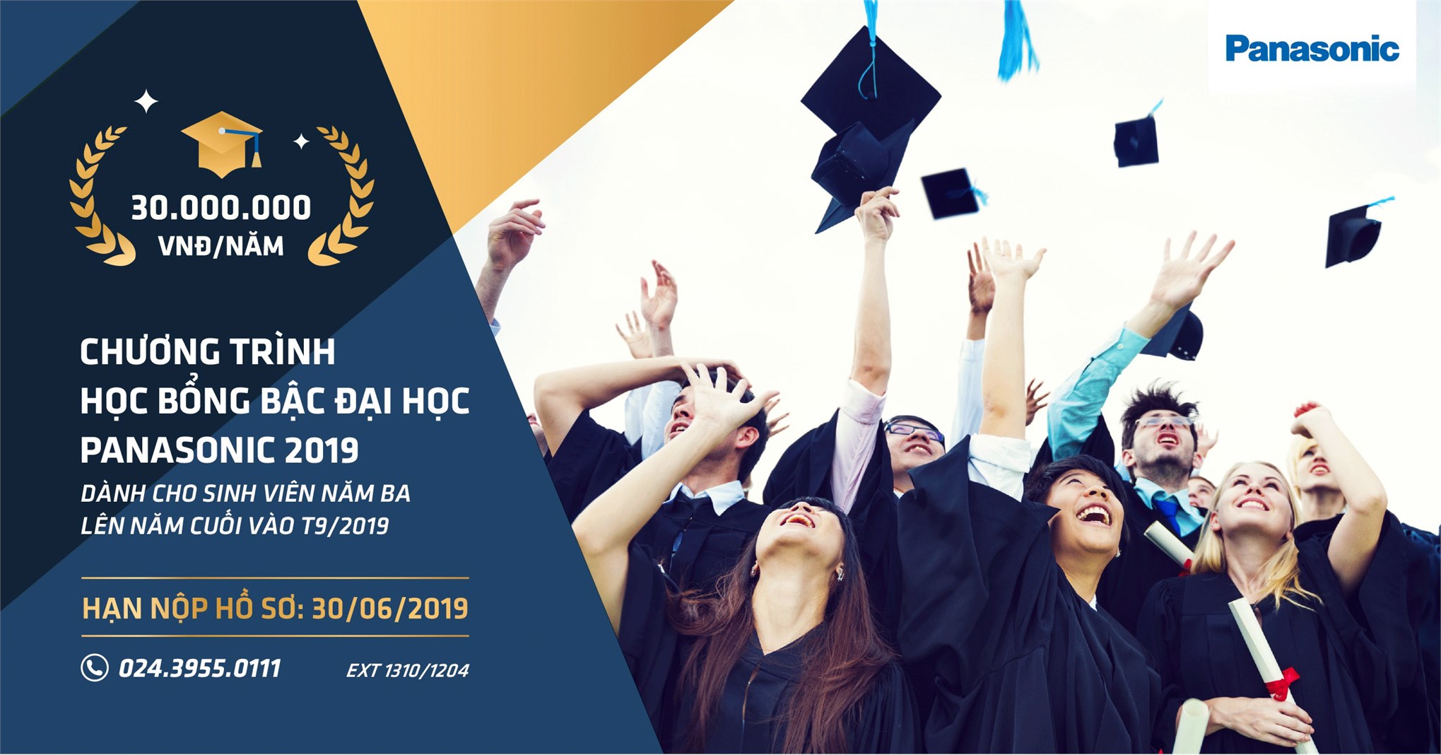 Từ tháng 4/2019 đến 30/06/2019, Panasonic Việt Nam chính thức nhận hồ sơ đăng ký chương trình học bổng bậc đại học Panasonic 2019, dành tặng 15 suất học bổng trị giá 30.000.000 VND/năm cho 15 sinh viên năm ba lên năm cuối vào tháng 9/2019 ưu tú của tất cả các trường đại học trên cả nước.