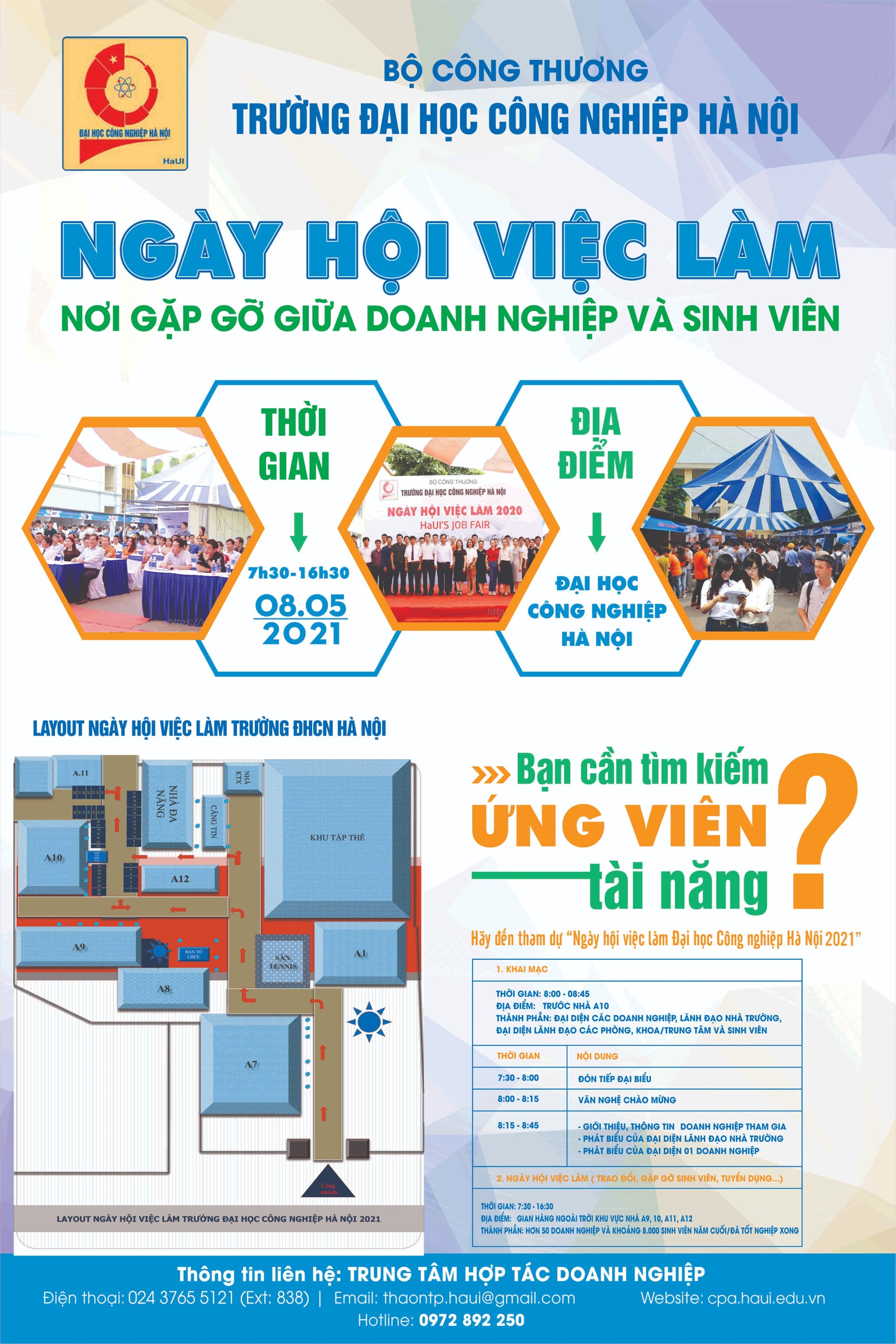 Nhằm tạo cơ hội cho các doanh nghiệp quảng bá hình ảnh và tìm được ứng viên tốt nhất, sinh viên có thể tiếp cận thị trường lao động và tìm được việc làm phù hợp, Nhà trường tổ chức “Ngày hội việc làm Trường Đại học Công nghiệp Hà Nội năm 2021”.