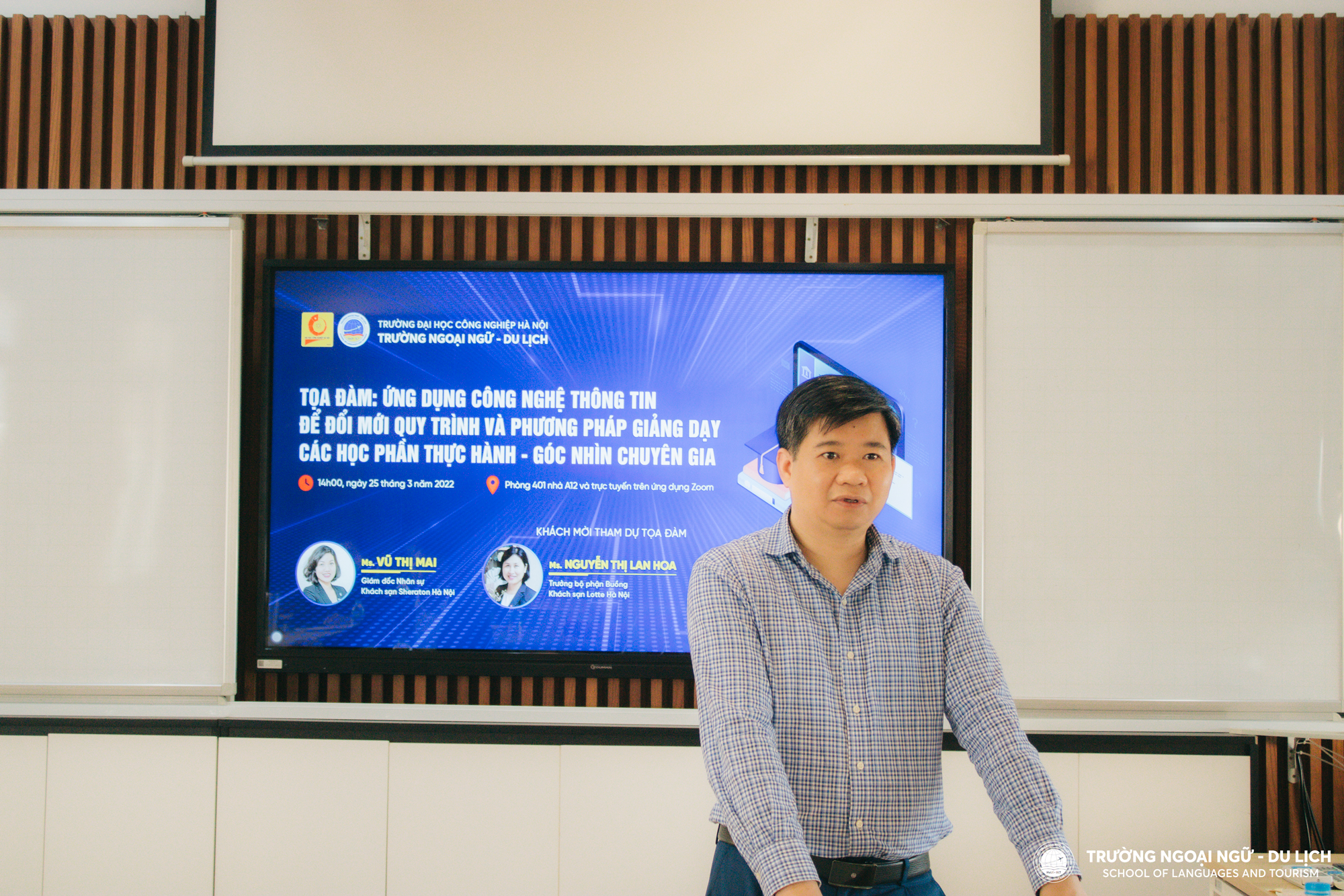 Chiều ngày 25/03/2022, Trường Ngoại ngữ - Du lịch tổ chức chương trình Tọa đàm “Ứng dụng công nghệ thông tin trong đổi mới quy trình và phương pháp giảng dạy các học phần thực hành - góc nhìn chuyên gia”