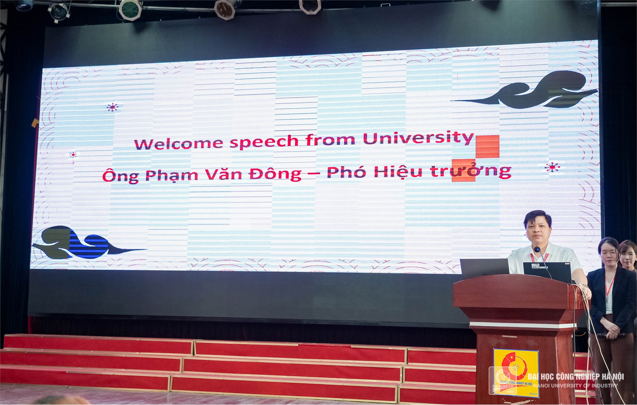 PGS.TS.Phạm Văn Đông – Phó Hiệu trưởng nhà trường chào đón đại diện các doanh nghiệp đến từ Nhật Bản tham dự chương trình.