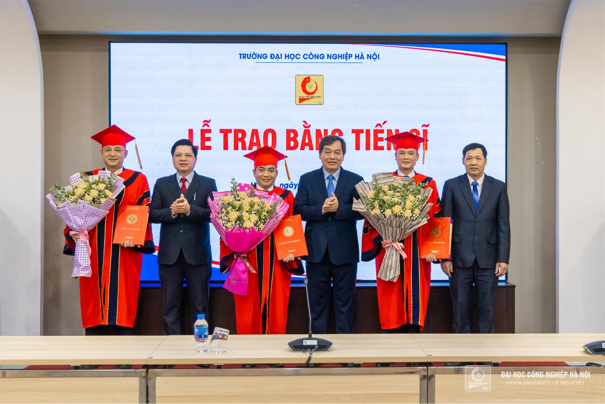 Thay mặt các tân Tiến sĩ được trao bằng, TS.Nguyễn Văn Đức bày tỏ niềm tự hào là học viên trưởng thành từ Đại học Công nghiệp Hà Nội, bày tỏ lòng biết ơn tới lãnh đạo Nhà trường, các Giáo sư, Phó giáo sư, Tiến sĩ, các nhà khoa học cùng toàn thể cán bộ, viên chức trong Trường đã đồng hành, giúp đỡ các tân Tiến sĩ trong suốt quá trình học tập và nghiên cứu. Các tân Tiến sĩ thể hiện sự quyết tâm, sẽ phát huy tốt nhất những kiến thức, phương pháp, cách tiếp cận nghiên cứu và giải quyết vấn đề đã lĩnh hội vào công việc, phục vụ đắc lực cho sự phát triển của Nhà trường và xã hội.