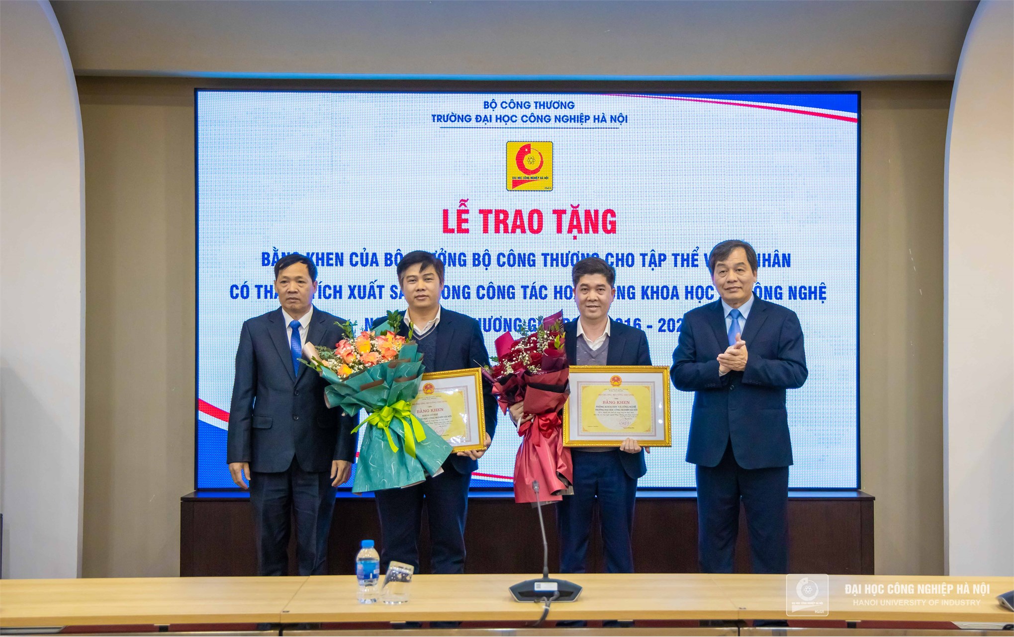Với những thành tích xuất sắc đạt được trong công tác hoạt động Khoa học và Công nghệ giai đoạn 2016 - 2020, Bộ trưởng Bộ Công Thương đã tặng thưởng Bằng khen cho 02 tập thể và 04 cá nhân của Đại học Công nghiệp Hà Nội. 02 tập thể gồm: khoa Cơ khí và phòng Khoa học Công nghệ; 04 cá nhân gồm: PGS.TS.Trần Đức Quý - Hiệu trưởng Nhà trường, PGS.TS.Phạm Văn Bổng - Phó Hiệu trưởng, PGS.TS.Phạm Văn Đông - Trưởng phòng Khoa học Công nghệ và PGS.TS.Trịnh Trọng Chưởng - Phó Viện trưởng Viện công nghệ HaUI.