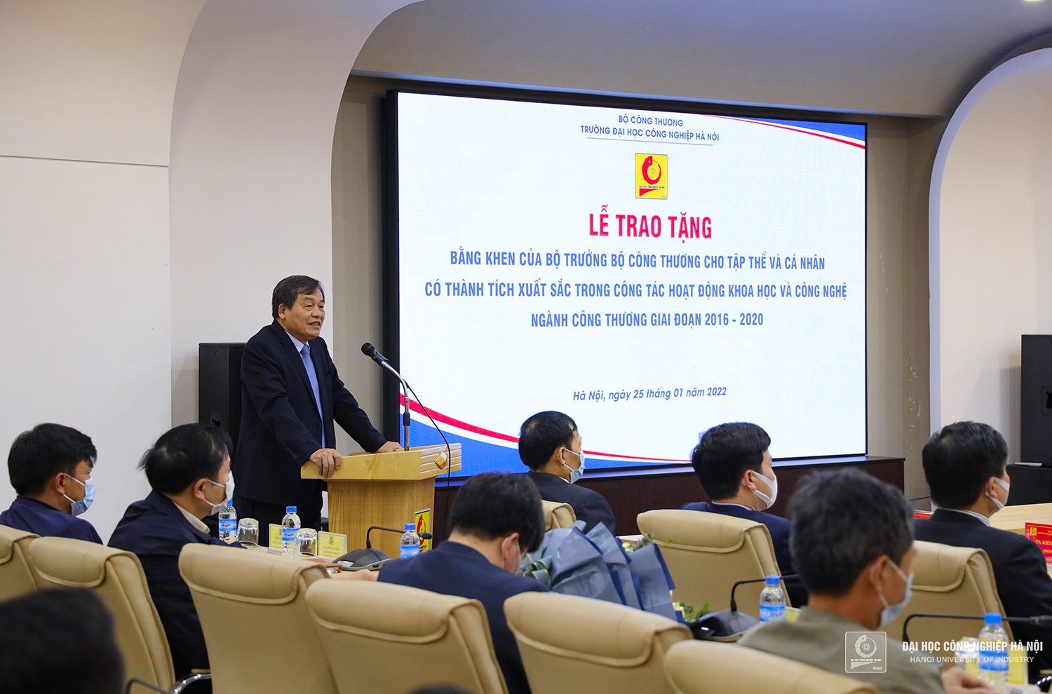 Chiều ngày 25/01/2022, Đại học Công nghiệp Hà Nội tổ chức Lễ trao bằng Tiến sĩ và Bằng khen của Bộ trưởng Bộ Công Thương cho tập thể và cá nhân có thành tích xuất sắc trong hoạt động Khoa học và Công nghệ giai đoạn 2016 - 2020.
