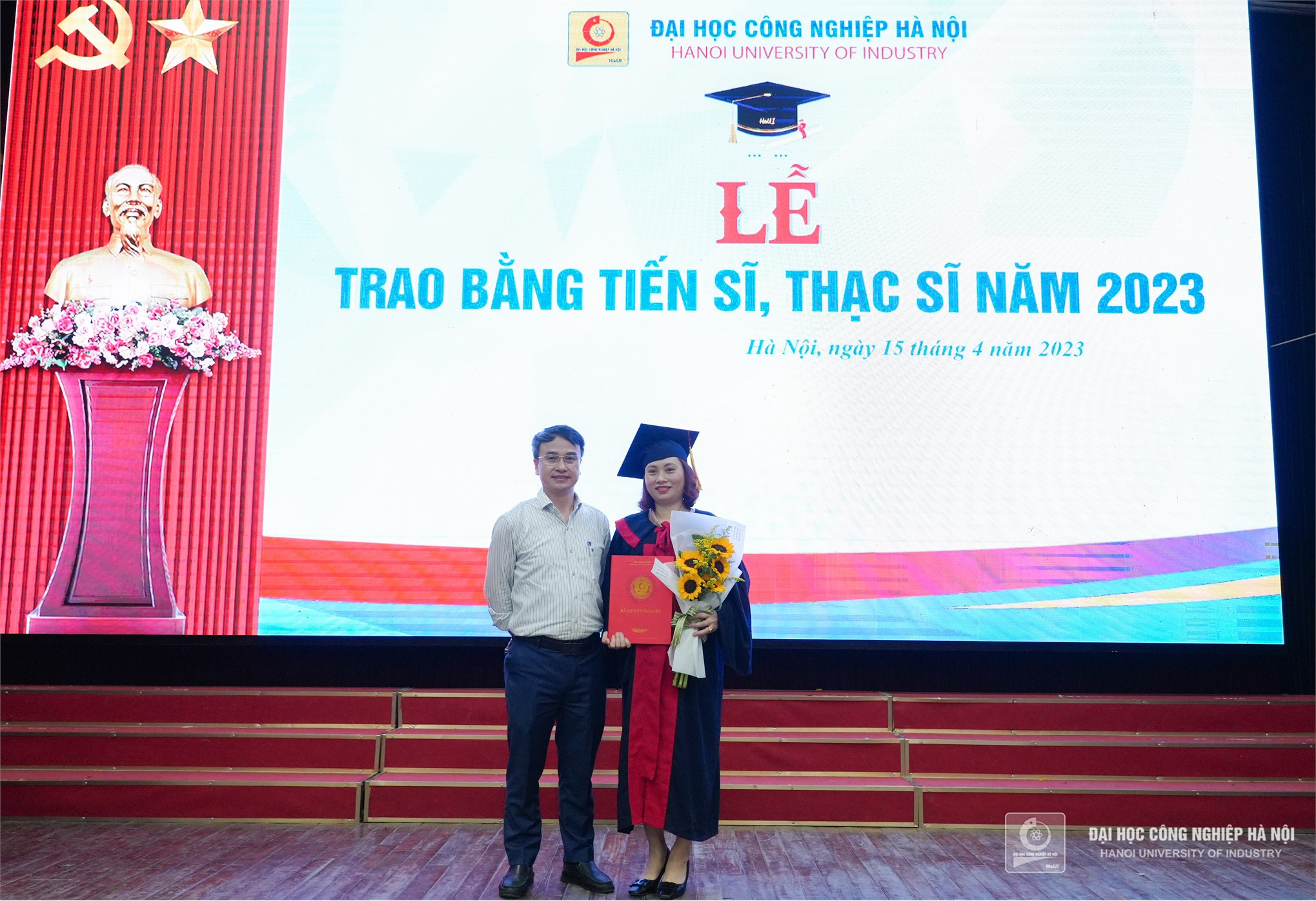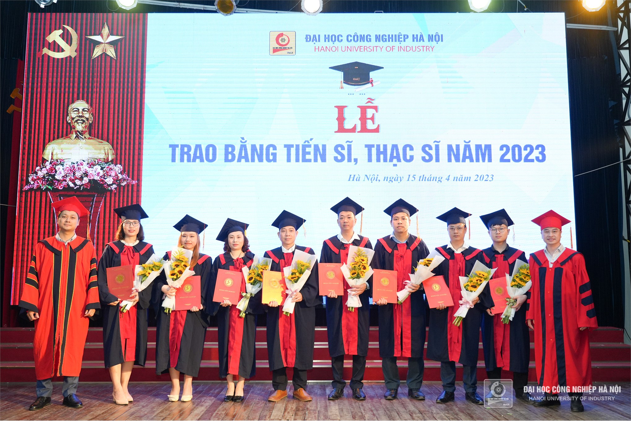 Sáng ngày 15/4/2023, Trường Đại học Công nghiệp Hà Nội tổ chức Lễ trao bằng tiến sĩ, thạc sĩ năm 2023. 3 tiến sĩ và 39 thạc sĩ đã xuất sắc hoàn thành chặng đường nghiên cứu, học tập và sẵn sàng cho những dự định mới.