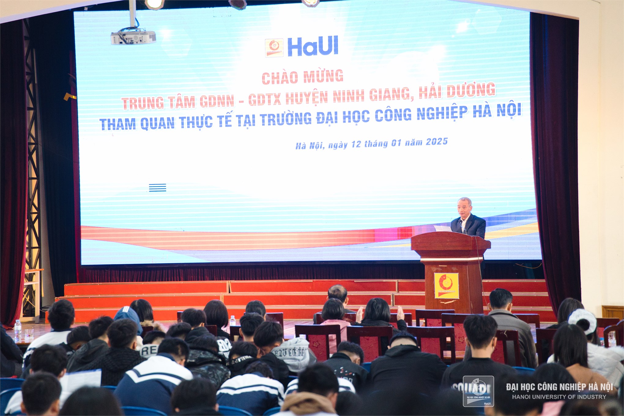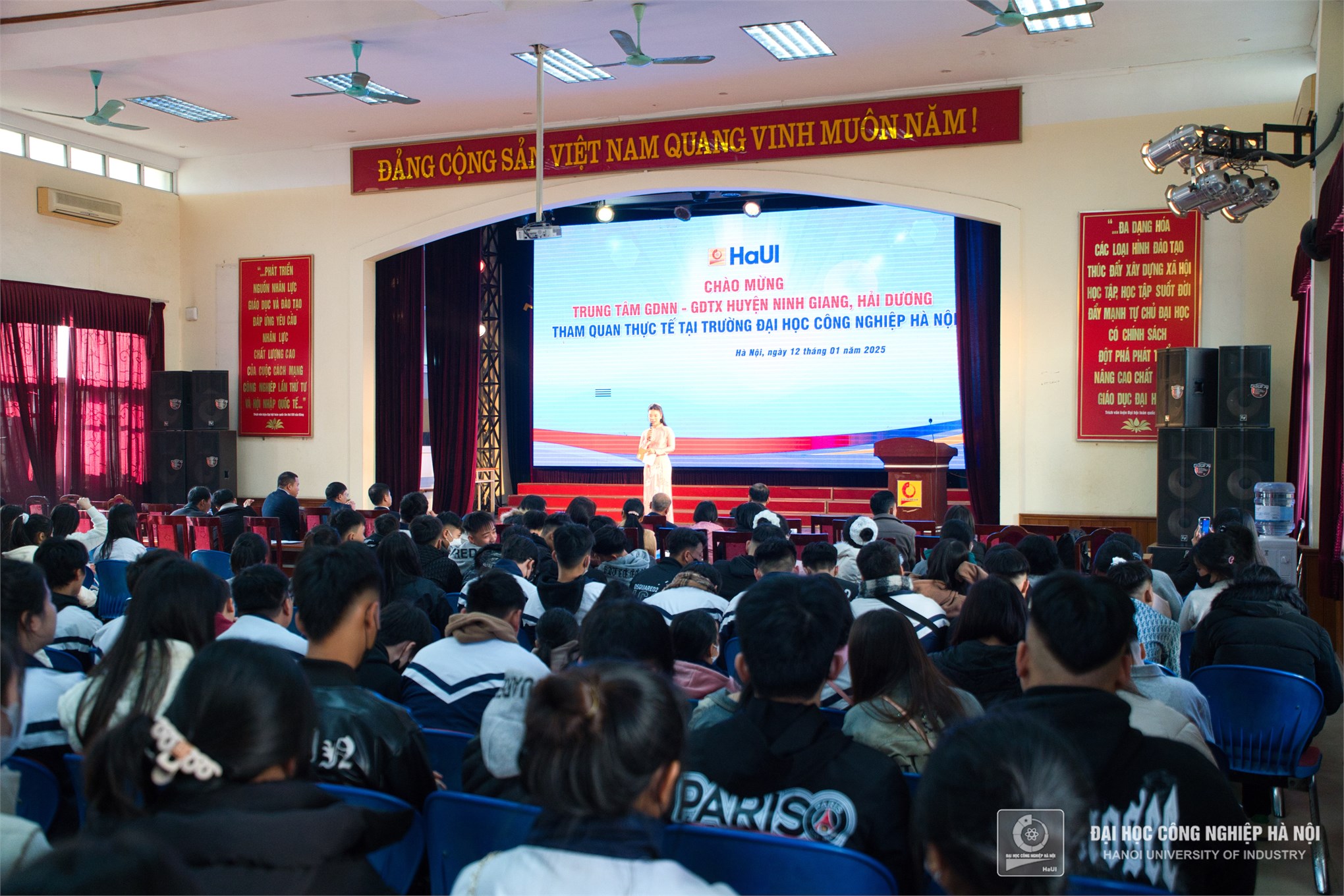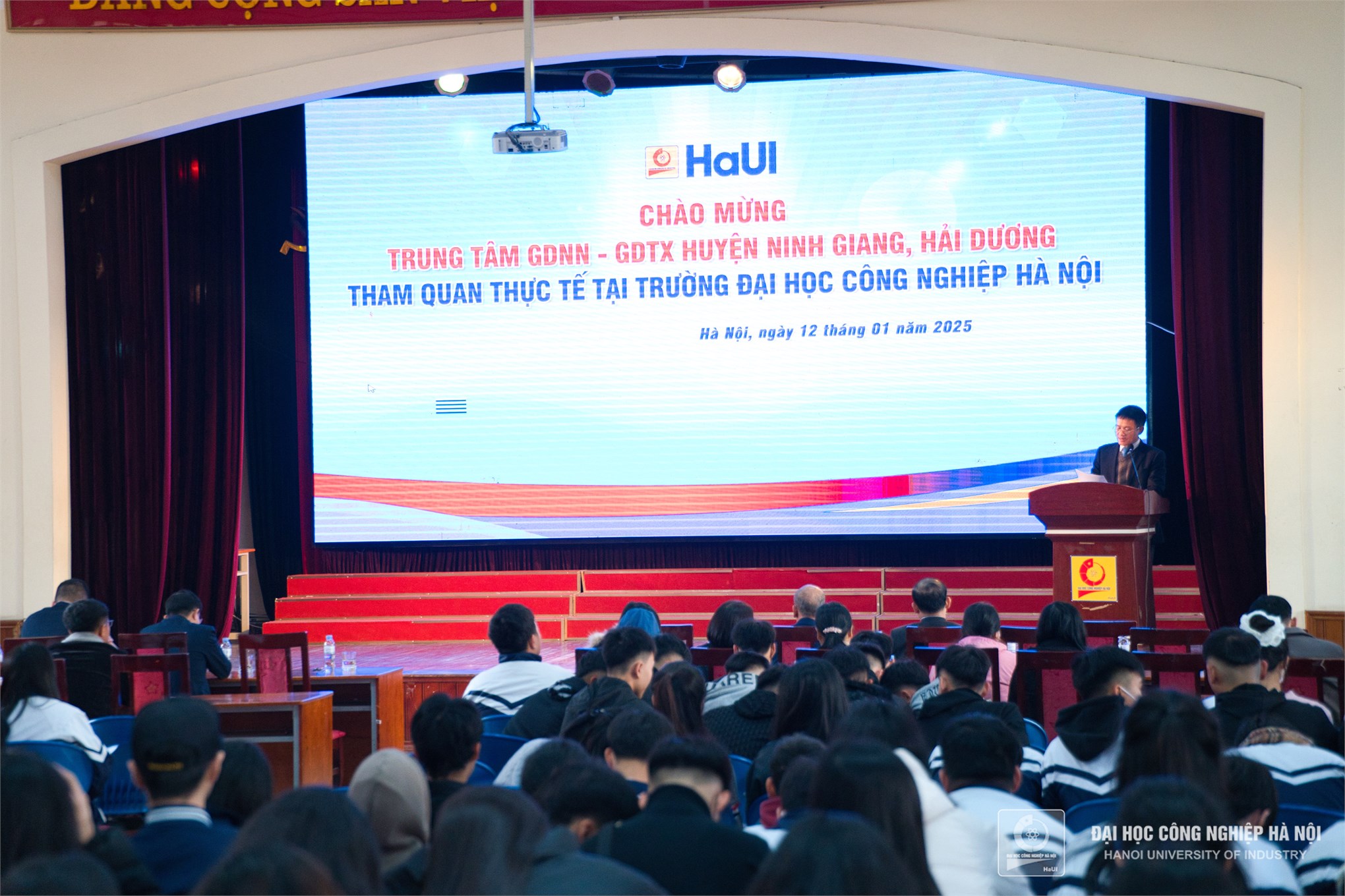 Đoàn giáo viên, phụ huynh và hơn 500 học sinh Trung tâm Giáo dục nghề nghiệp - Giáo dục Thường xuyên huyện Ninh Giang tham quan HaUI ngày 12/01/2025
