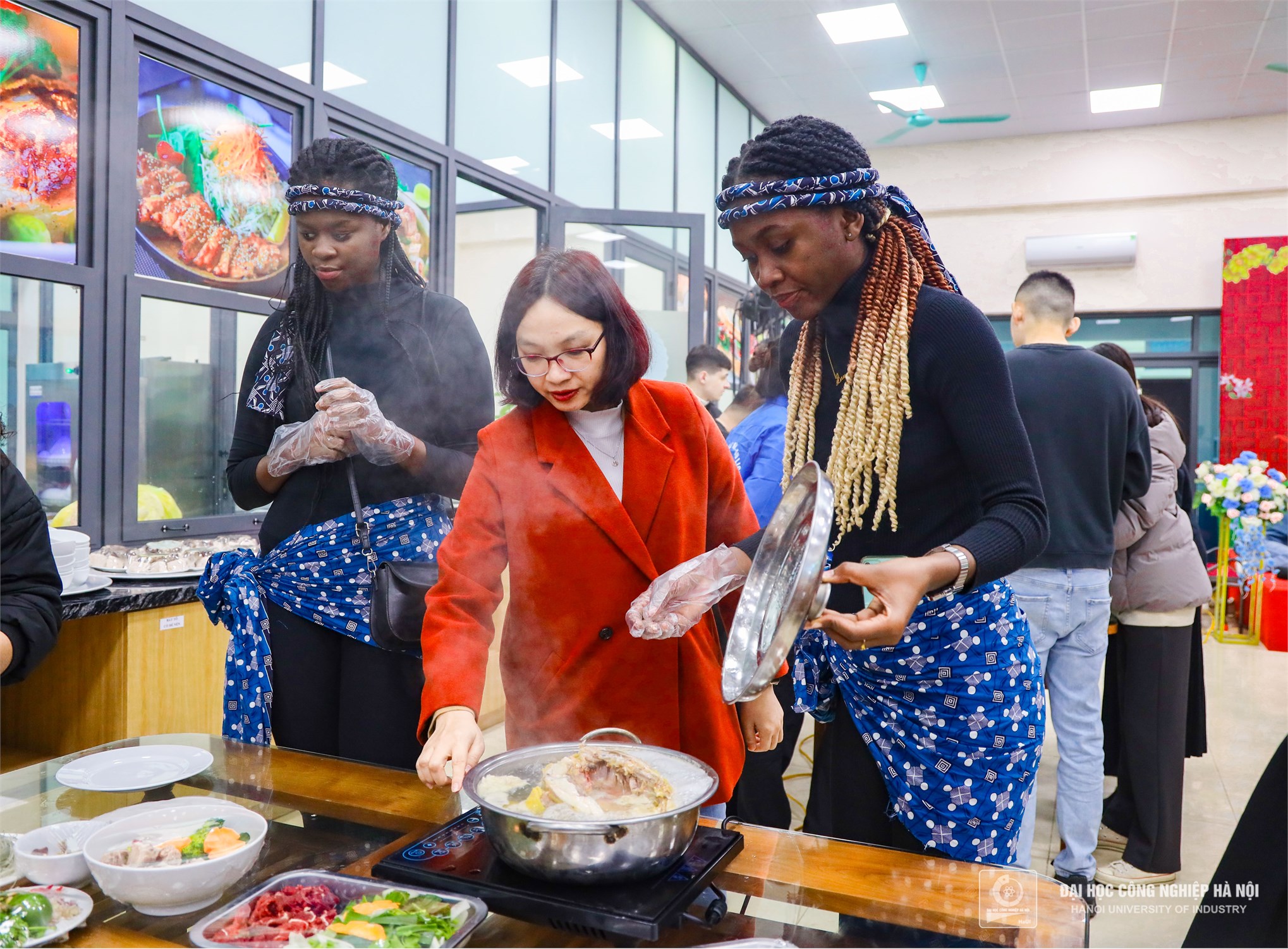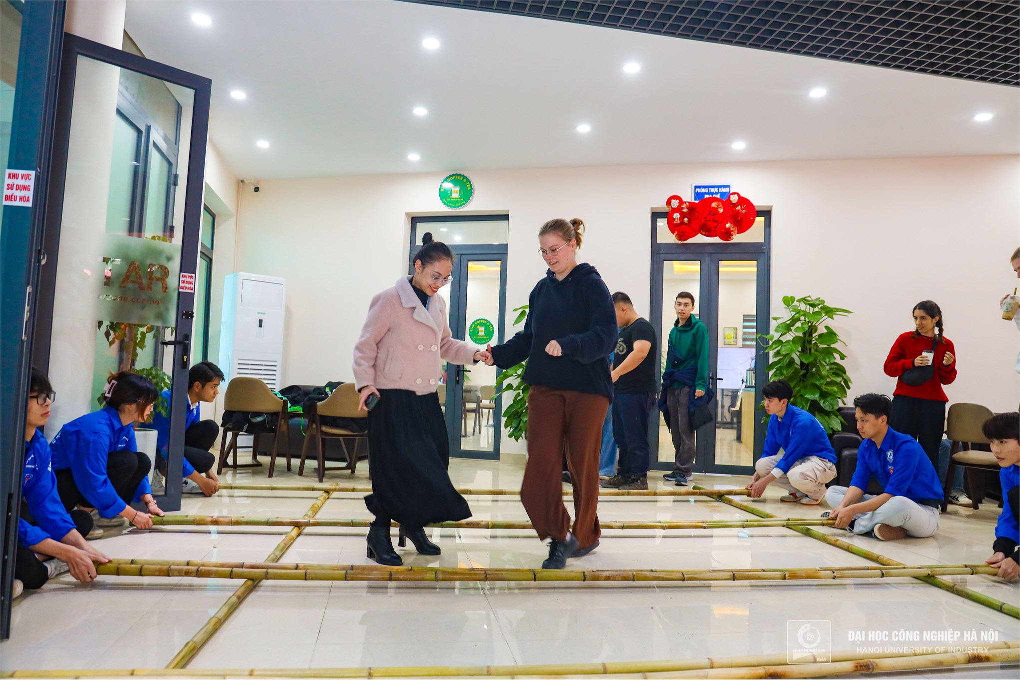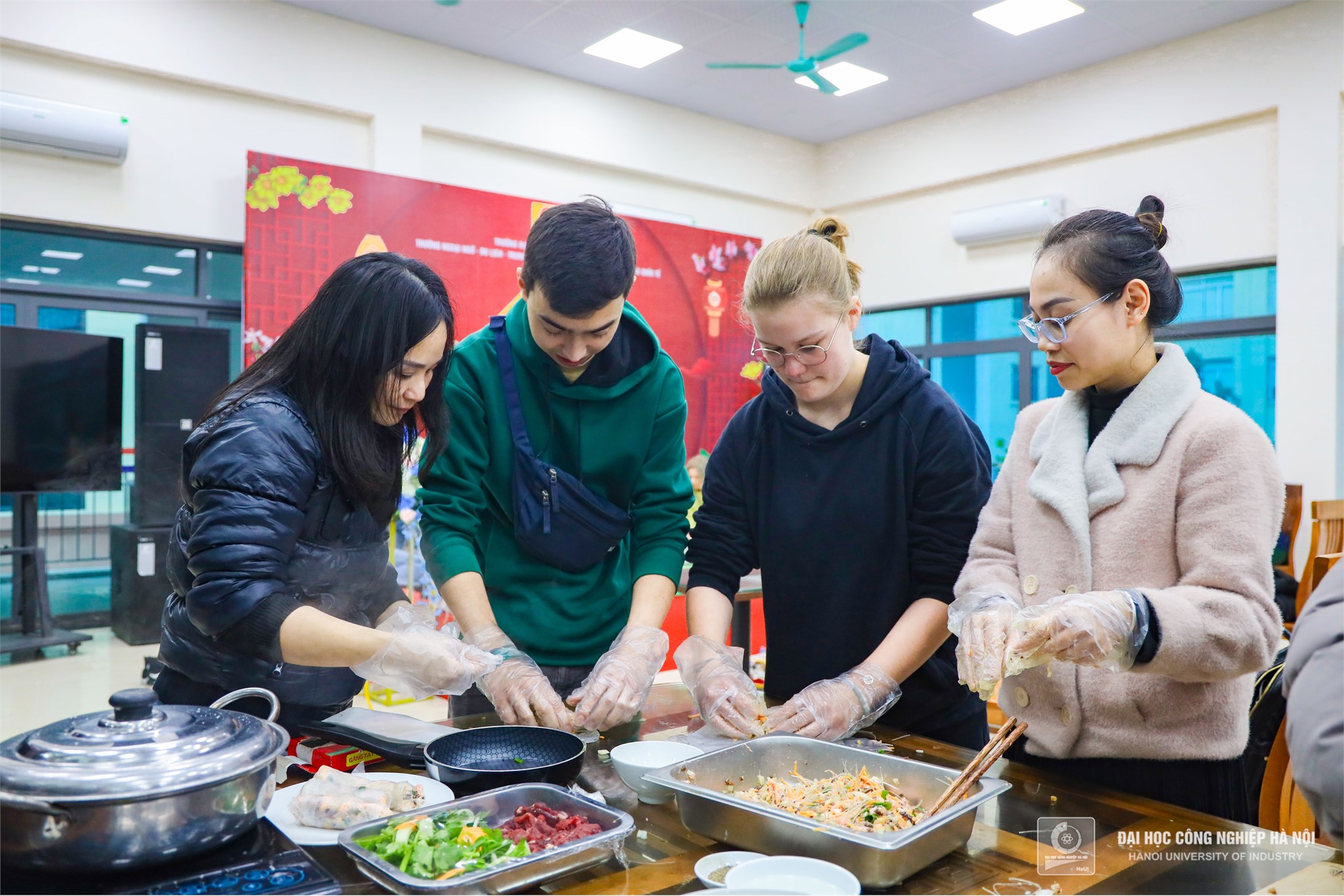 Trong không gian ngập tràn hương sắc của mùa xuân, các sinh viên quốc tế đến từ nhiều nước khác nhau (Lào, Hàn Quốc, Trung Quốc, Mozambique, Đức,… ) đã có cơ hội trải nghiệm nét văn hóa truyền thống độc đáo của Việt Nam trong ngày Tết Cổ truyền.