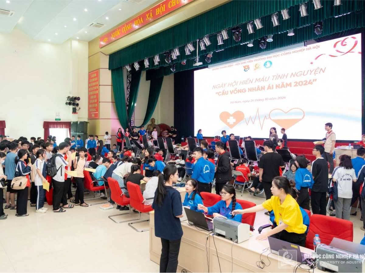 Ngày 24/10/2024, Trường Đại học Công nghiệp Hà Nội (HaUI) phối hợp với Hội Chữ thập đỏ tỉnh Hà Nam cùng Viện Huyết học & Truyền máu Trung ương tổ chức Ngày hội hiến máu tình nguyện, thu về hơn 500 đơn vị máu. Đây là sự kiện ý nghĩa, thể hiện tinh thần nhân văn vì cộng đồng của viên chức, người lao động HaUI trong hoạt động thiện nguyện, góp phần cứu sống nhiều người bệnh.