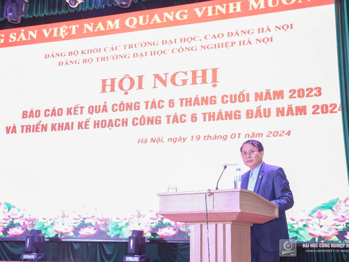 Chiều 29/01/2024, Đảng bộ Đại học Công nghiệp Hà Nội tổ chức Hội nghị Báo cáo kết quả công tác Đảng 06 tháng cuối năm 2023 và triển khai kế hoạch công tác 06 tháng đầu năm 2024. Đồng chí Lê Hồng Quân – Bí thư Đảng ủy chủ trì Hội nghị.