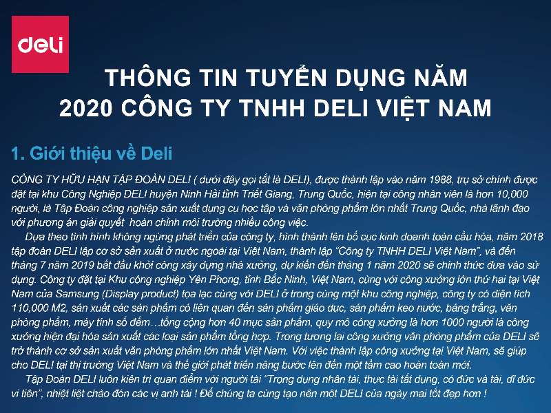 Hội thảo cơ hội việc làm của Công ty TNHH Deli Việt Nam