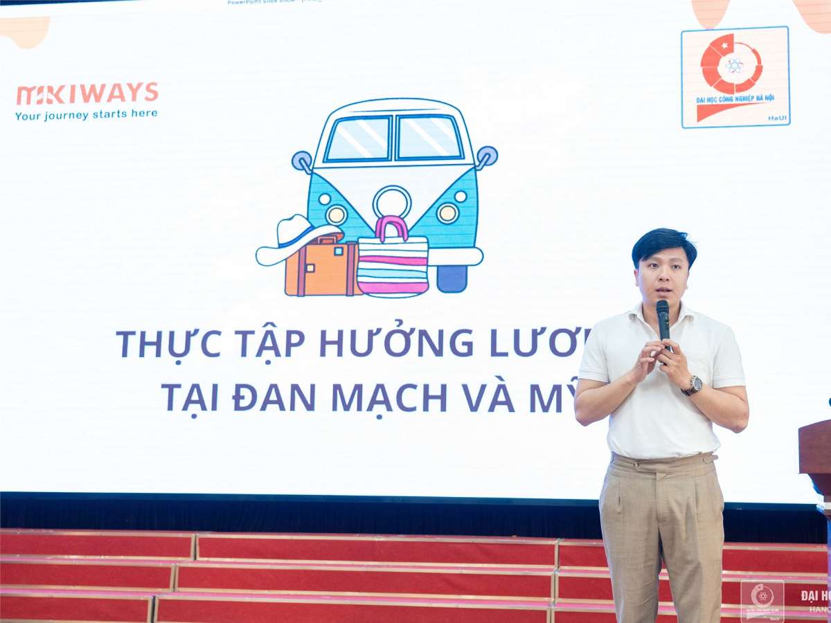 Trường Đại học Công nghiệp Hà Nội phối hợp với Công ty TNHH Thương mại và Du lịch Miki (Mikiways) tổ chức chương trình “Hội thảo giới thiệu chương trình tu nghiệp tại Đan mạch và Mỹ” nhằm giới thiệu cơ hội tu nghiệp, việc làm cho sinh viên (SV) trình độ Đại học khóa 15, 16 và SV đã tốt nghiệp Trường: Cơ khí – Ô tô, Ngoại ngữ - Du lịch (Khoa Quản trị nhà hàng – Khách sạn); Khoa: Điện, Điện tử.