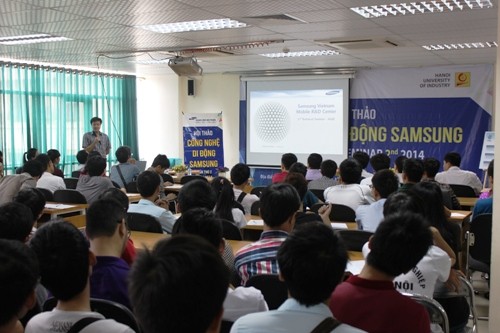 Nhằm giúp sinh viên có định hướng nghề nghiệp và bồi dưỡng đam mê nghiên cứu công nghệ, sáng ngày 22/10/2014, trường Đại học Công nghiệp Hà Nội phối hợp với Trung tâm nghiên cứu và Phát triển Di động Samsung Việt Nam - SVMC tổ chức Hội thảo Công nghệ di động Samsung và Cơ hội nghề nghiệp với Samsung Mobile.