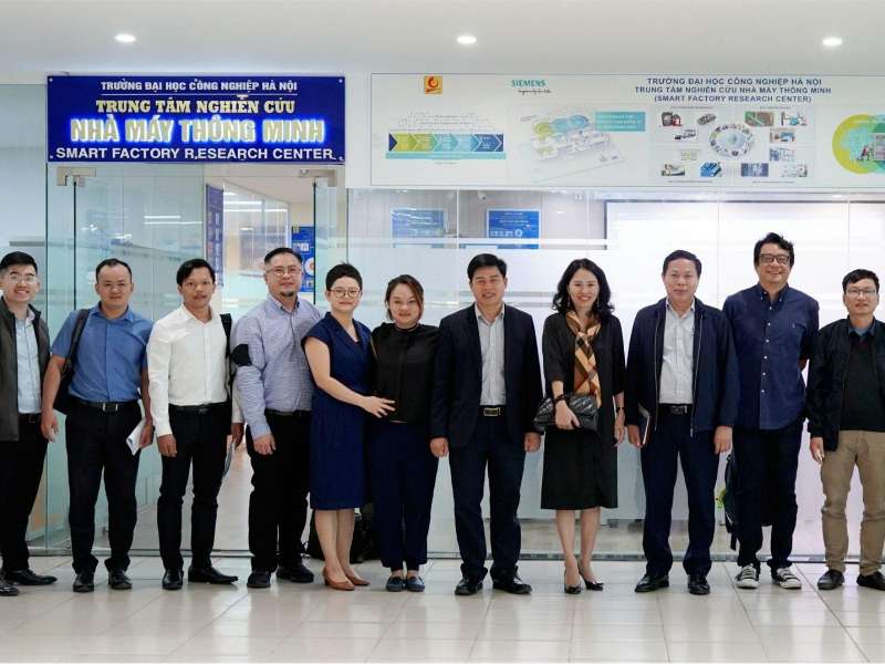 Hãng Siemens DISW và Trường Steaming Cambodia cùng công ty Vietbay tới thăm quan và trao đổi kinh nghiệm về xây dựng và vận hành Trung tâm nghiên cứu Nhà máy thông minh tại Đại học Công nghiệp Hà Nội