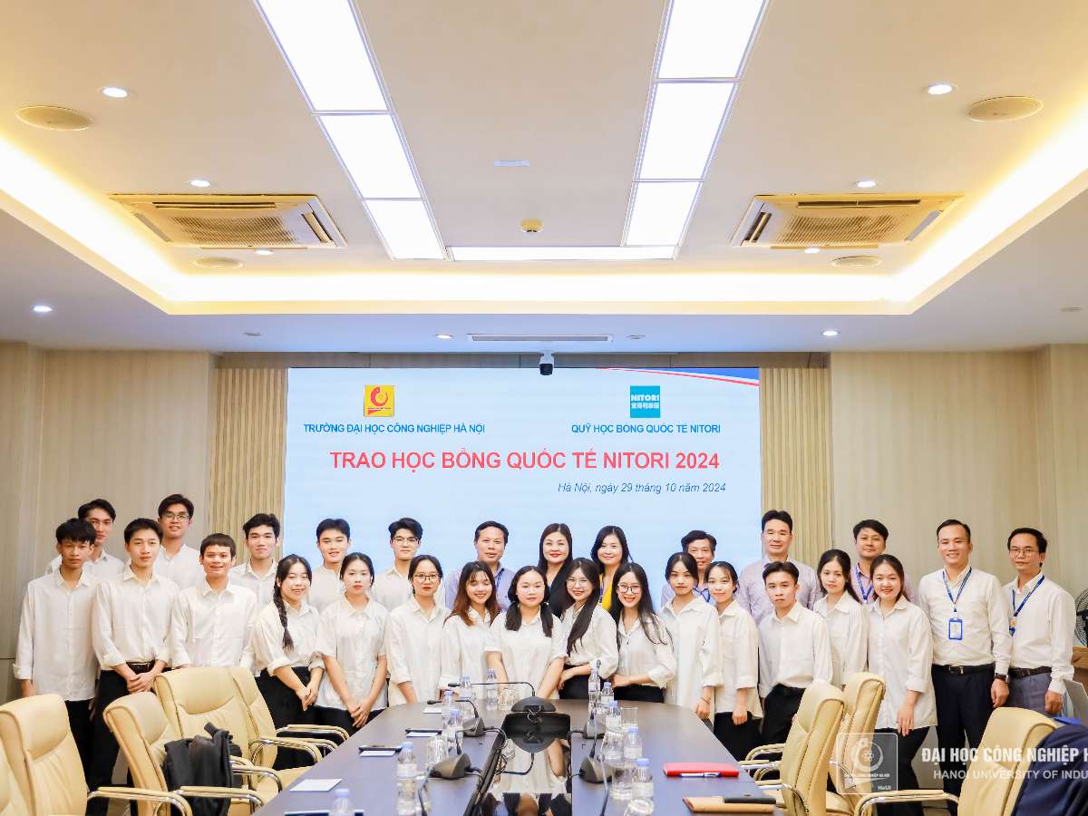 Chiều ngày 29/10, Trường Đại học Công nghiệp Hà Nội (HaUI) tổ chức trao học bổng Quốc tế Nitori 2024, với tổng giá trị 260 triệu đồng cho sinh viên các ngành: Cơ khí – Ô tô, Công nghệ Hóa, Điện - Điện tử, Công nghệ kỹ thuật máy tính, Công nghệ kỹ thuật cơ điện tử, Quản trị kinh doanh, Kế toán.